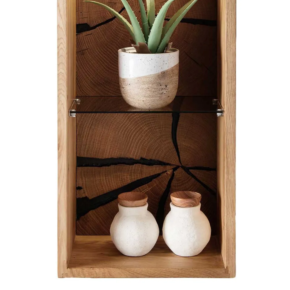 - Aus Wildeiche Massivholz und Glas gefertigt
