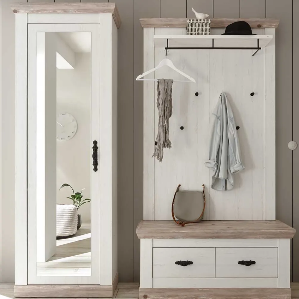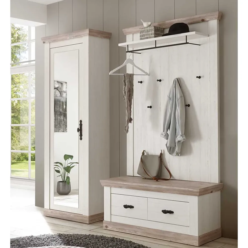 - Attraktive Garderoben Kombination in Weiß und Pinie verwittert