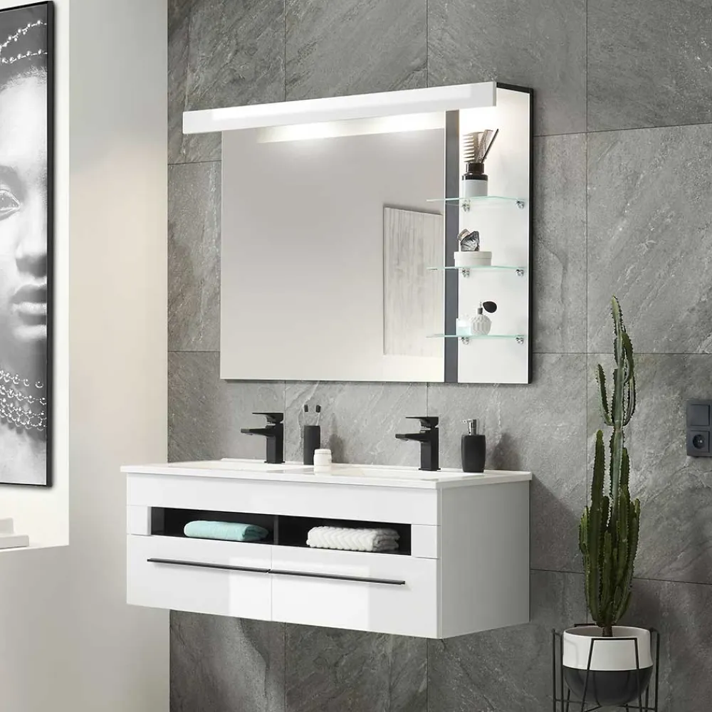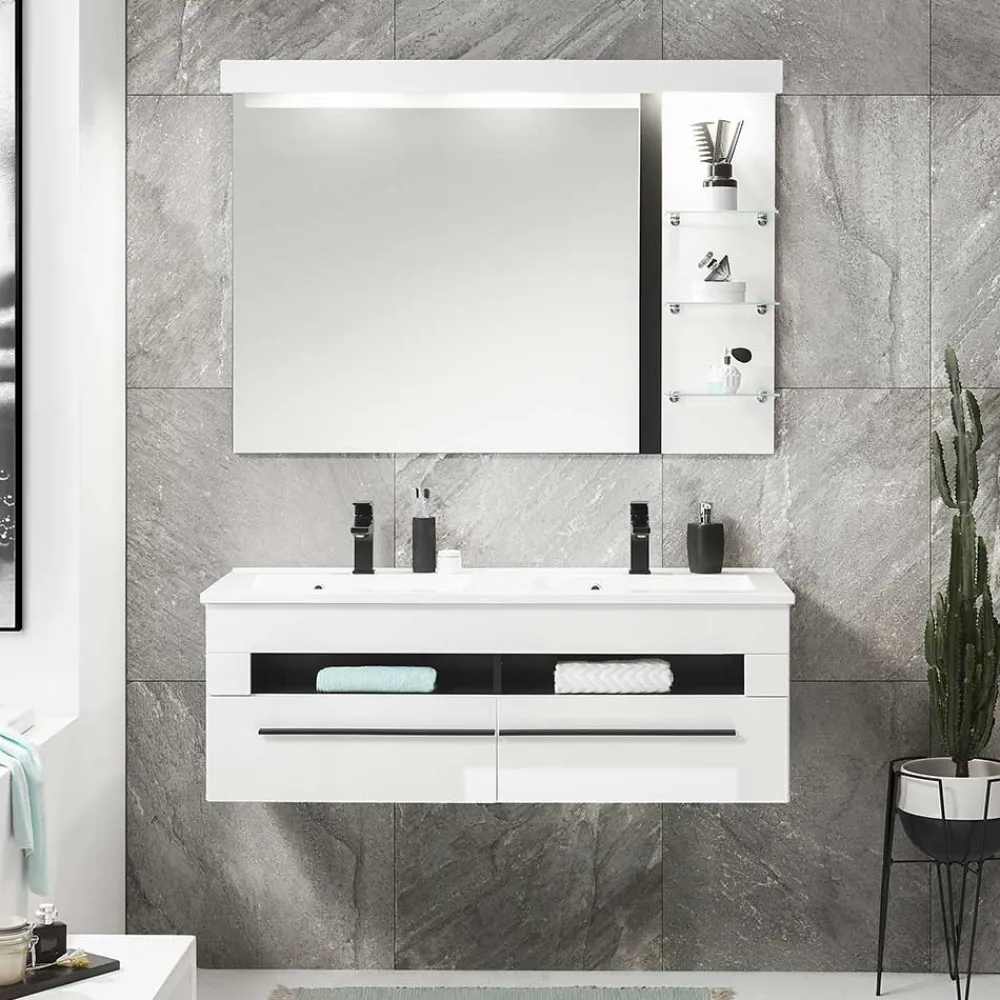 Wohnen Doppel-Waschtisch & LED Spiegel – Ingmesan (zweiteilig)
