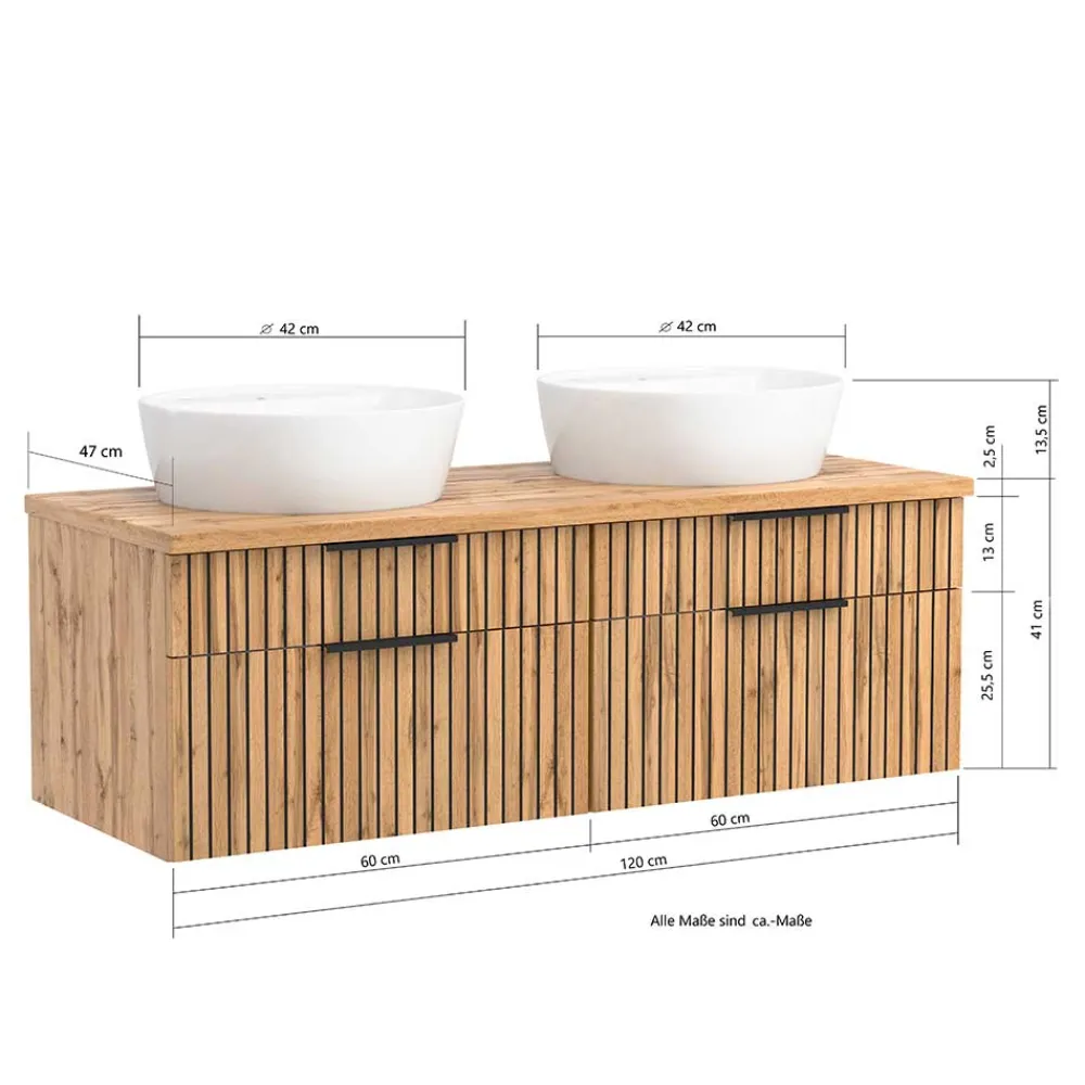 Wohnen Doppelter Waschtisch mit vier Schubladen – Crystoga