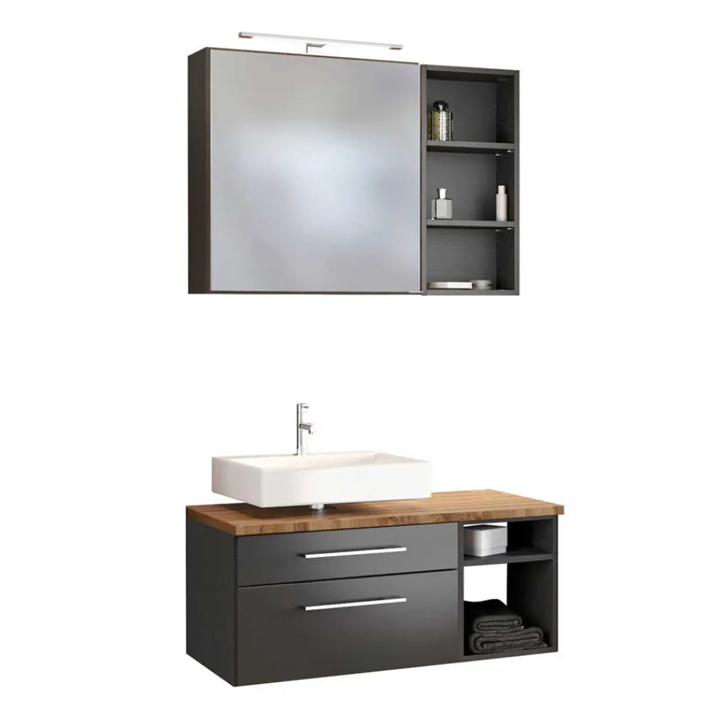 - Elegantes Badmöbel Set in dunkel Grau und Wildeichefarben