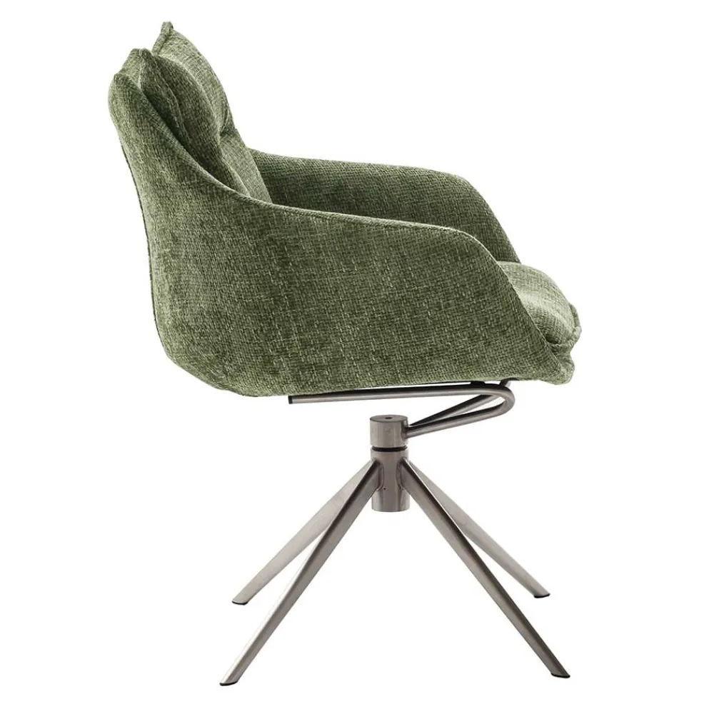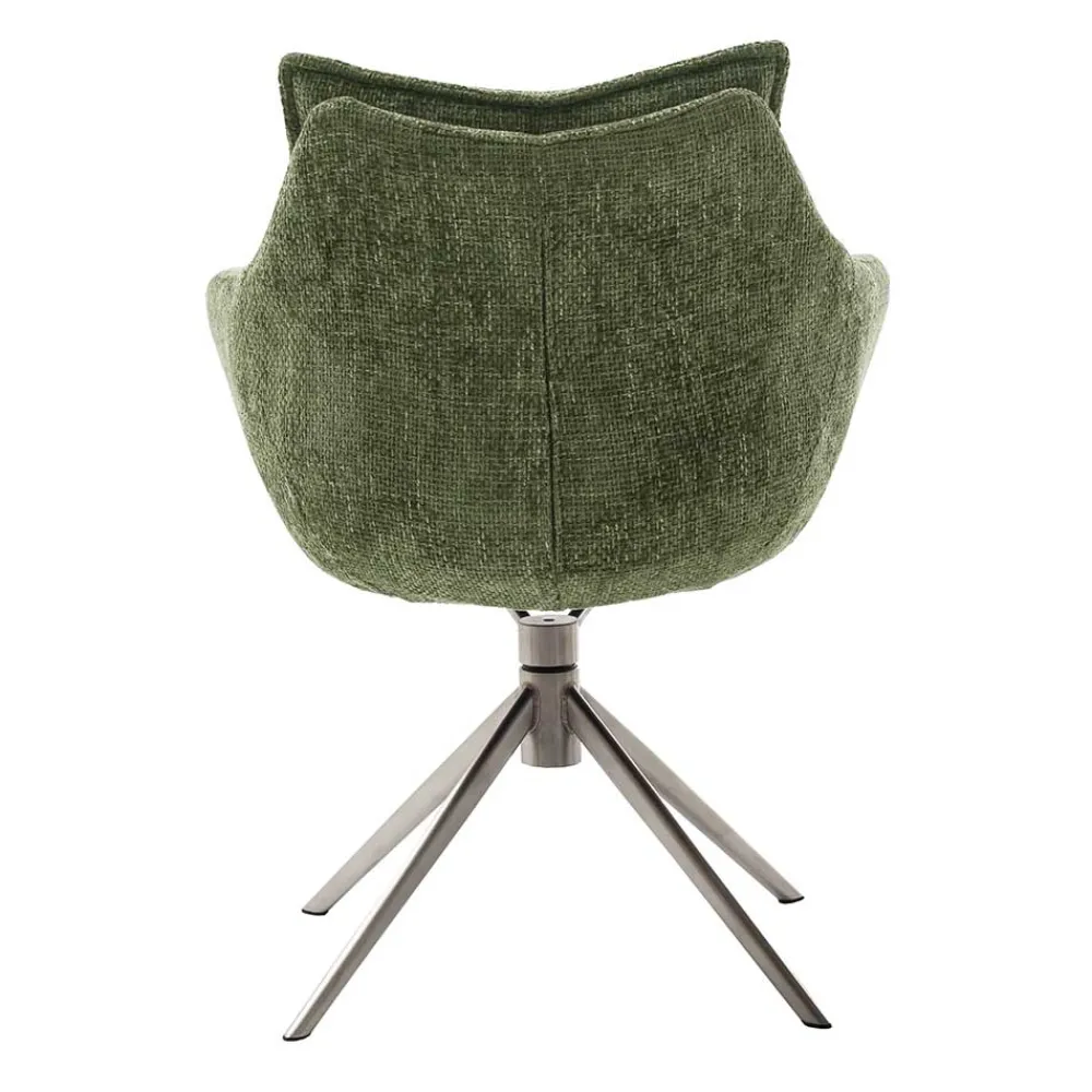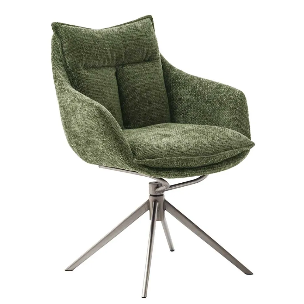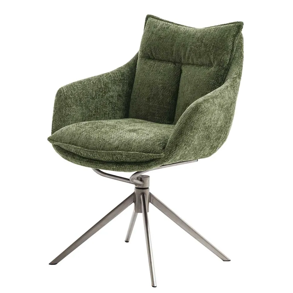 - Ein komfortabler Stuhl in Edelstahlfarben und Oliv Grün für ein modernes Zuhause