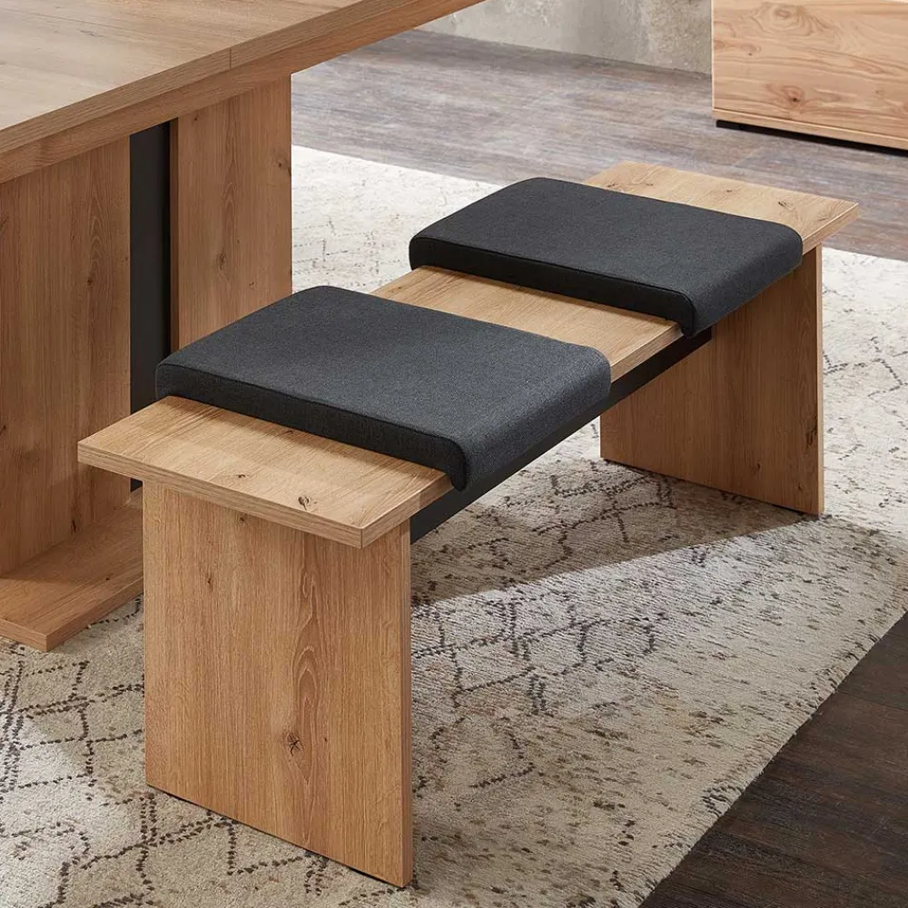 Modernes Design steht für klare Linien, Funktionalität und eine zeitgemäße Ästhetik. Mit der Esstisch Bank „Latenda“ ziehen Sie genau diese Merkmale in Ihr Zuhause ein. Diese stilvolle Sitzbank besticht durch ihre edle Kombination aus Wildeichefarben, Anthrazit und Schwarz und fügt sich nahtlos in jede moderne Einrichtung ein.