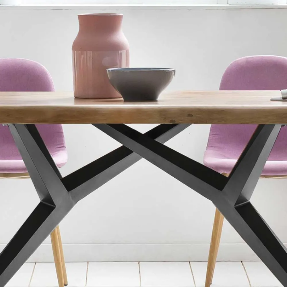 - Stabiler Esstisch in Akaziefarben und Antikschwarz