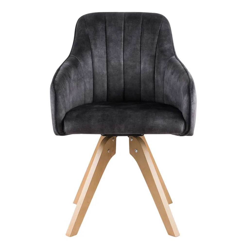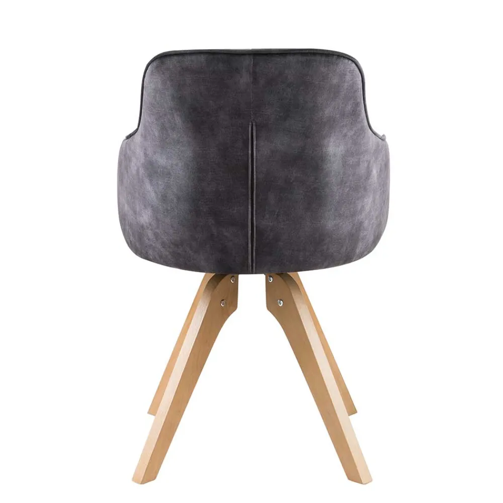 „Taly“ besticht nicht nur durch sein Aussehen, sondern auch durch seine hochwertige Verarbeitung. Das stabile, schräg gestellte Vierfußgestell aus massiver Buche, lackiert in warmen Eichefarben, bietet sowohl Stabilität als auch Stil. Der wertige Veloursbezug in Anthrazit mit Vintage-Optik, aus 100% Polyester gefertigt, ist nicht nur optisch ansprechend, sondern auch besonders langlebig und pflegeleicht. Die eleganten Steppnähte an der perfekt geformten Rückenlehne runden das edle Erscheinungsbild ab.