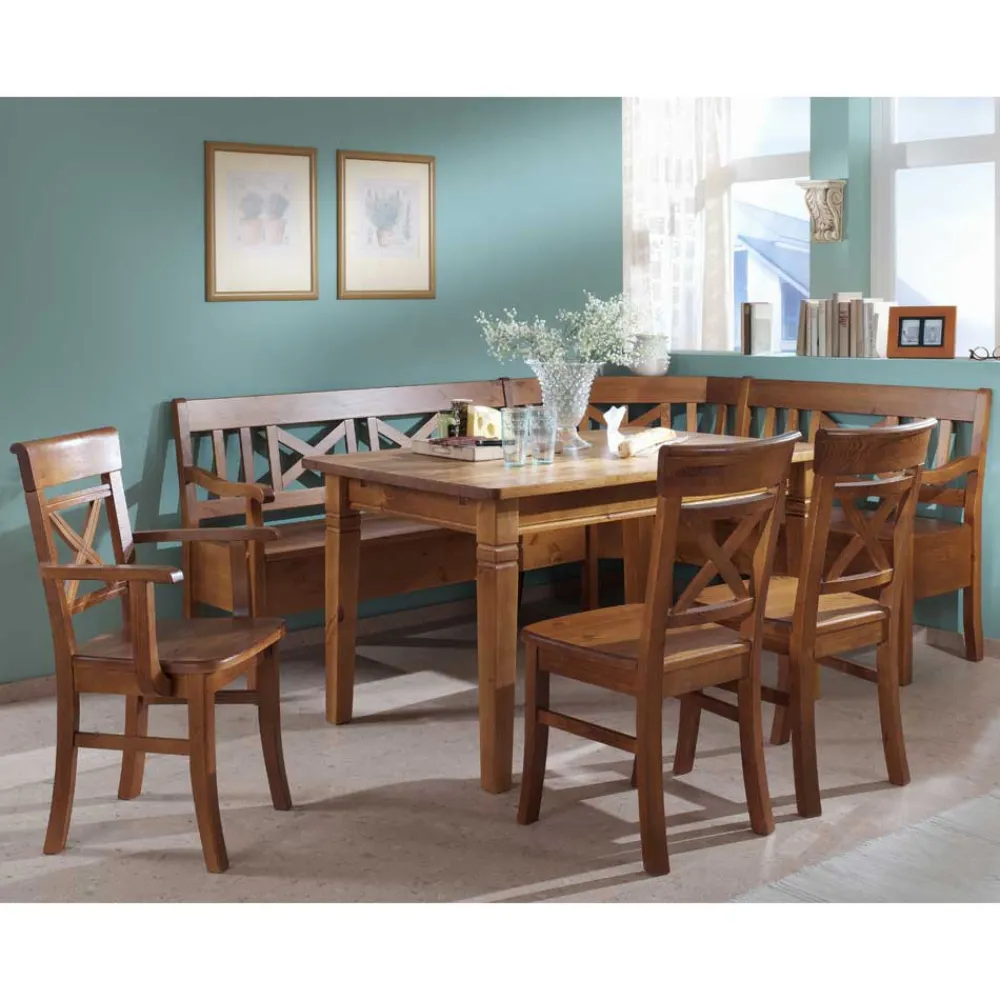 - Set bestehend aus Eckbank, Tisch, Armlehnenstuhl und zwei Stühlen ohne Armlehnen