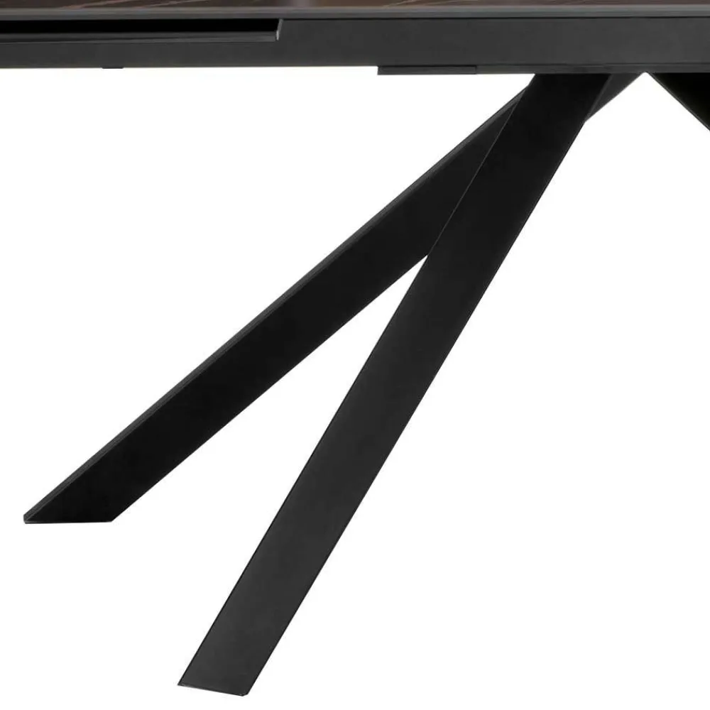 Das schwarz lackierte Metallgestell wurde nicht nur mit einem Auge für Stil, sondern auch für maximale Stabilität konzipiert. Die schräg angeordneten Beine sorgen für eine außergewöhnliche Standfestigkeit und schaffen gleichzeitig einen einzigartigen visuellen Akzent, der das moderne Design perfekt unterstreicht. Dieses Gestell hält dem täglichen Gebrauch problemlos stand und sieht dabei stets makellos aus.