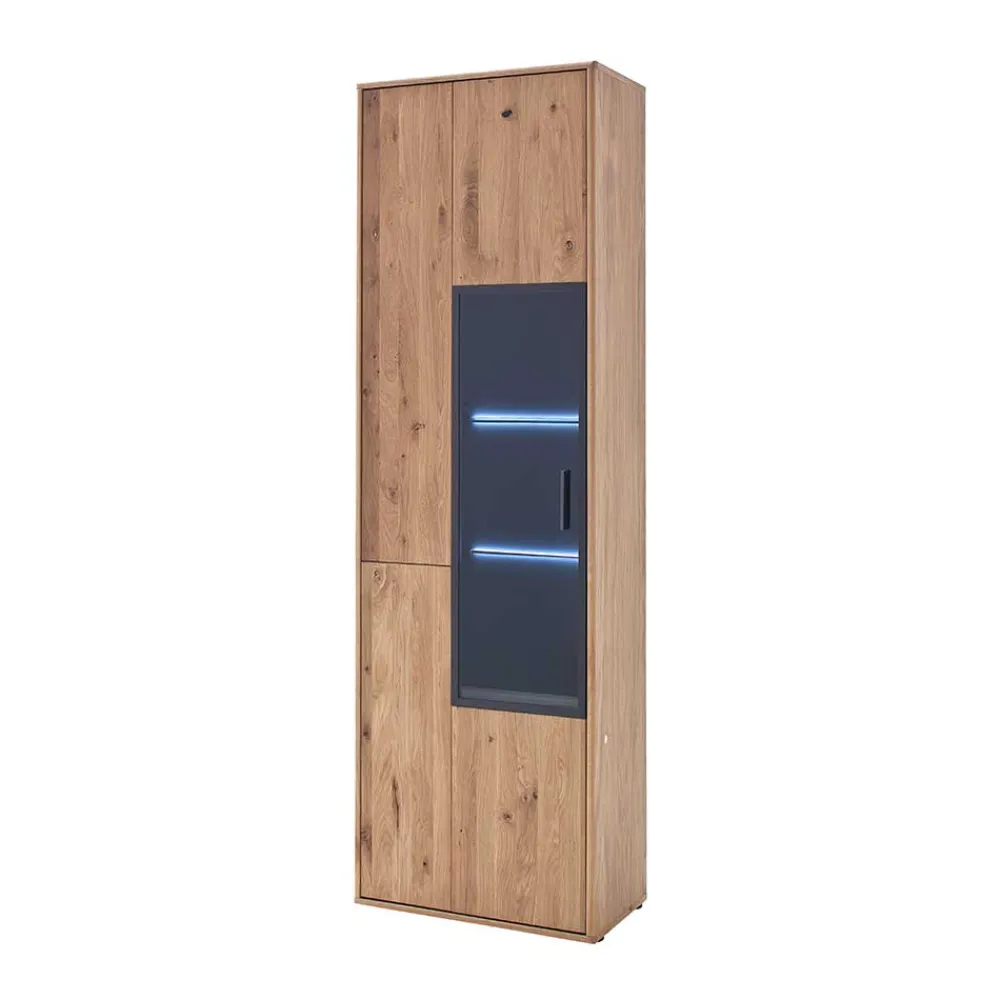 - Geschmackvolle Vitrine in Anthrazit, Asteiche und Eiche Bianco