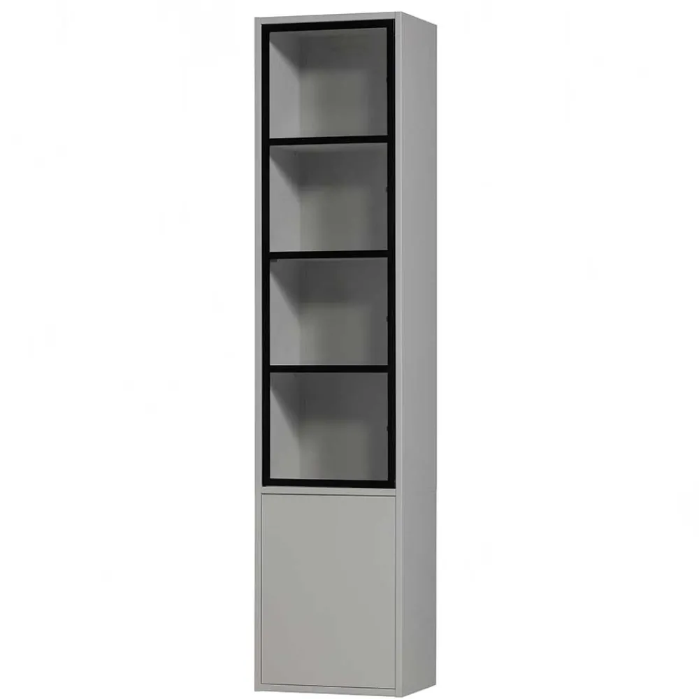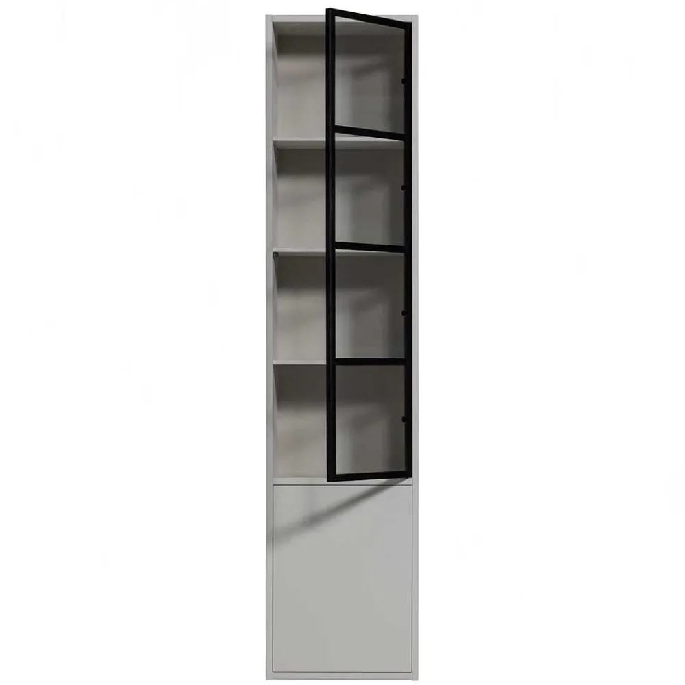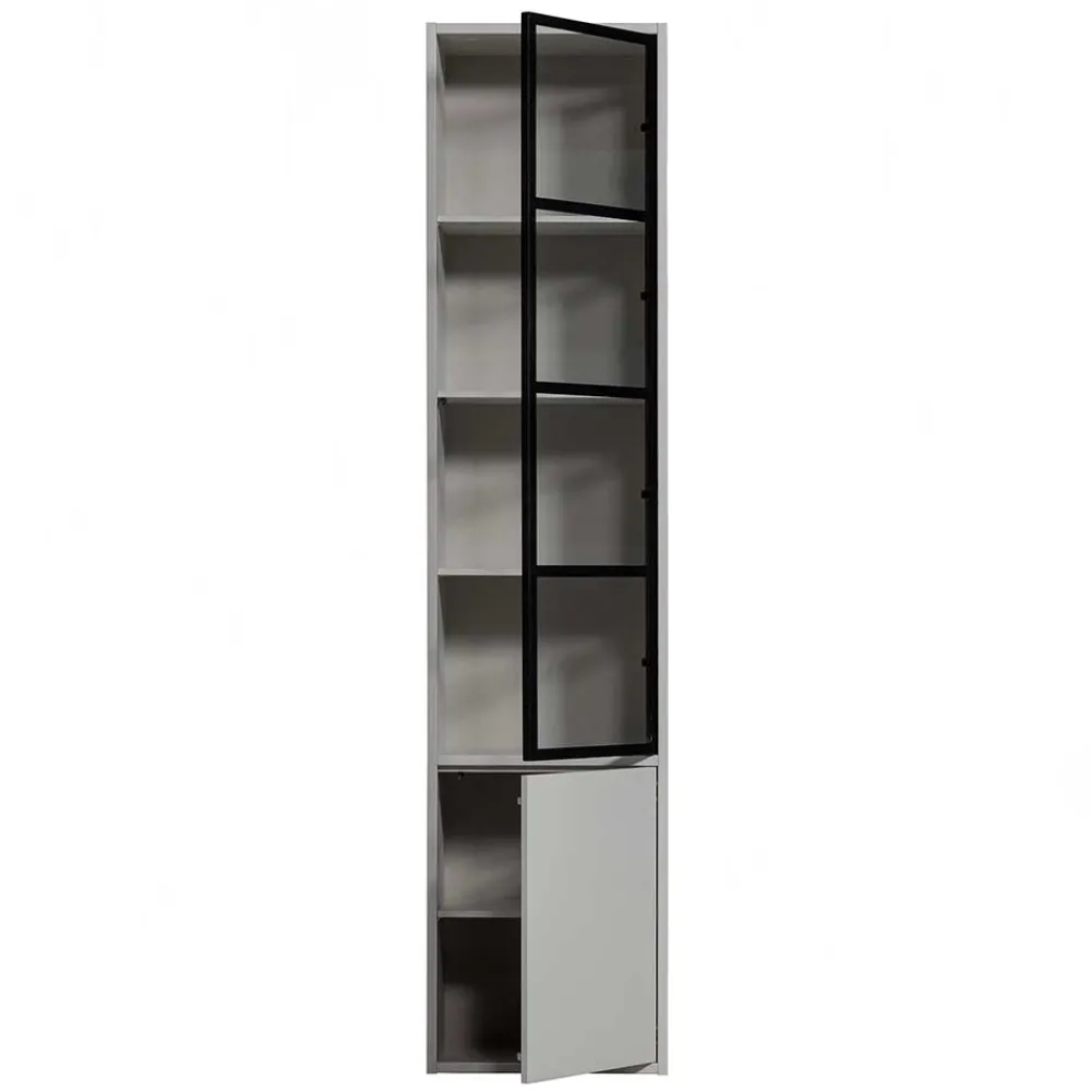 - Zwei Türen, oben ein dekorativ mattschwarzer Metallrahmen an der Glastür