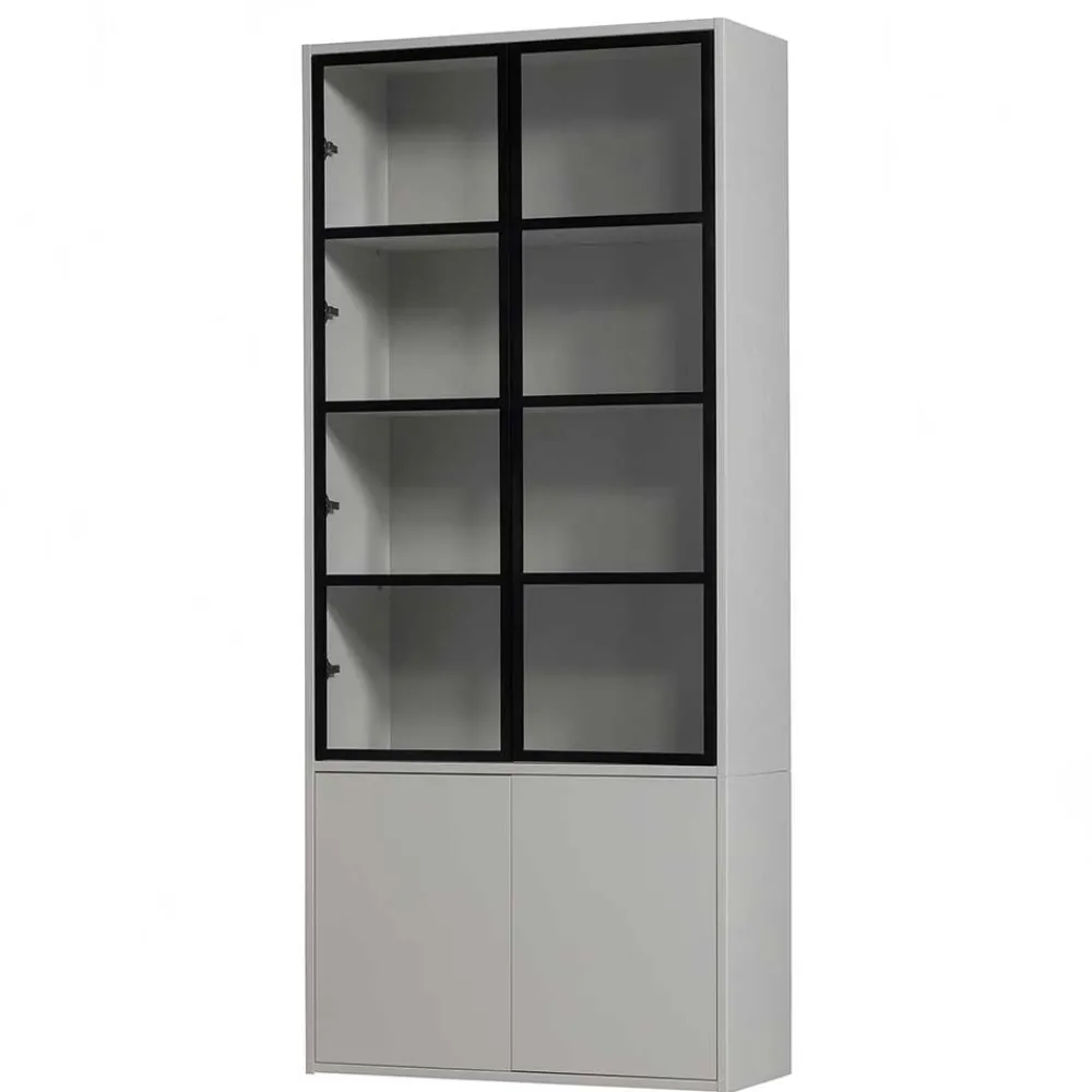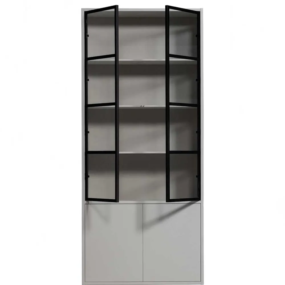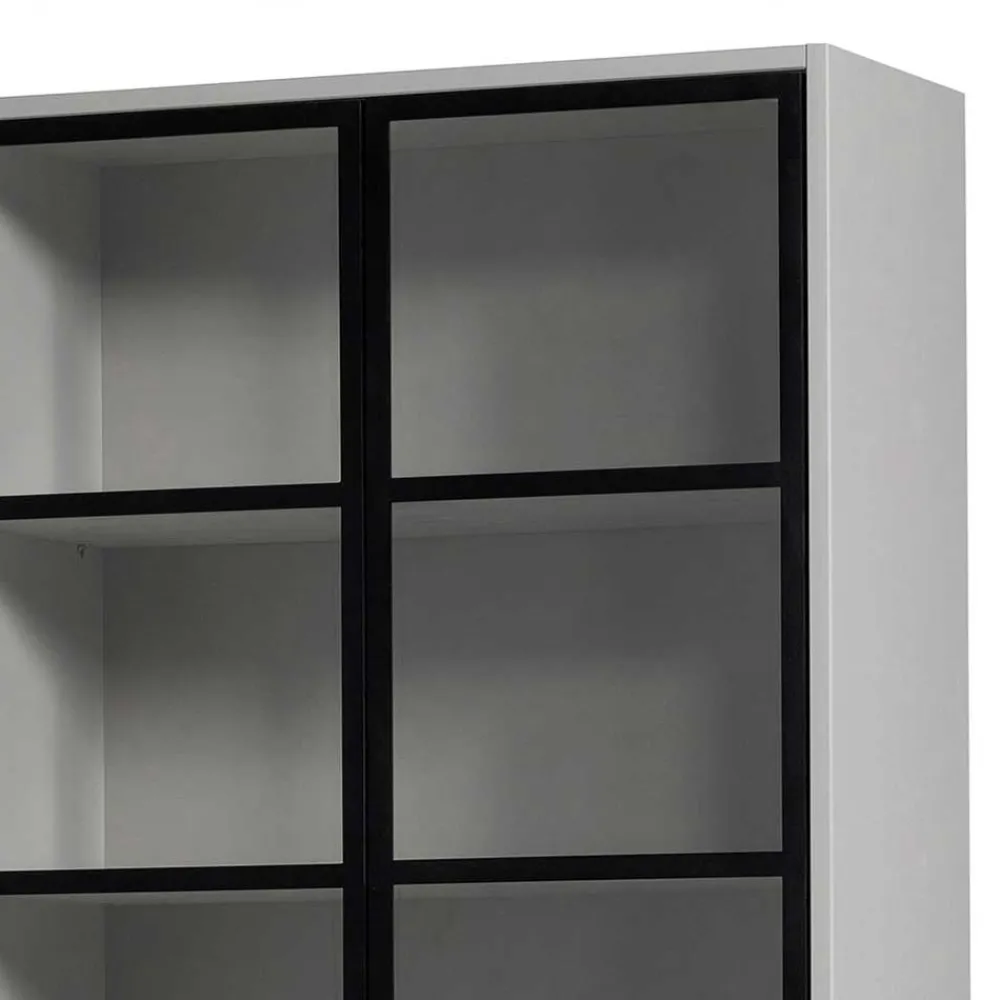 - Vier Türen, oben jeweils ein dekorativ mattschwarzer Metallrahmen an den Glastüren