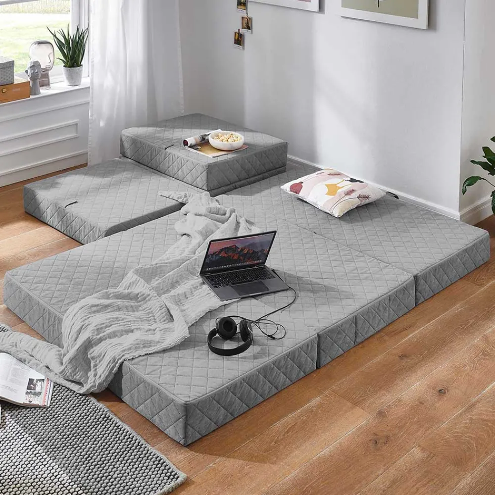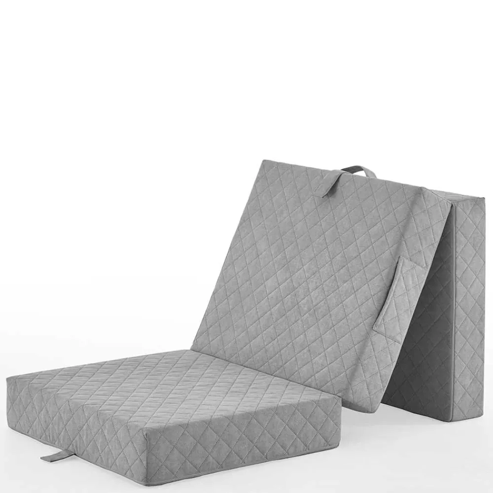 Wohnen Faltmatratze Polsterhocker in Grau Stoff – Samba