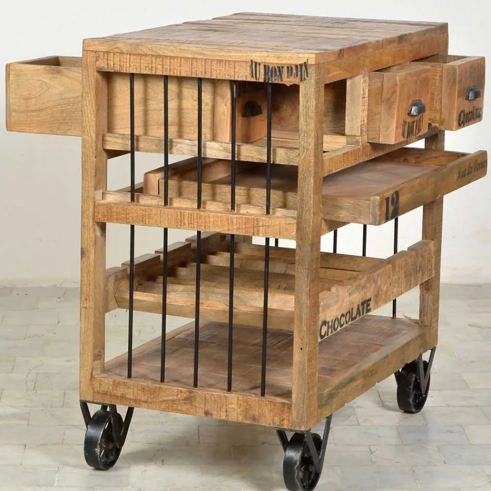 - Erstklassiger Servierwagen in Mangoholz Naturfarben