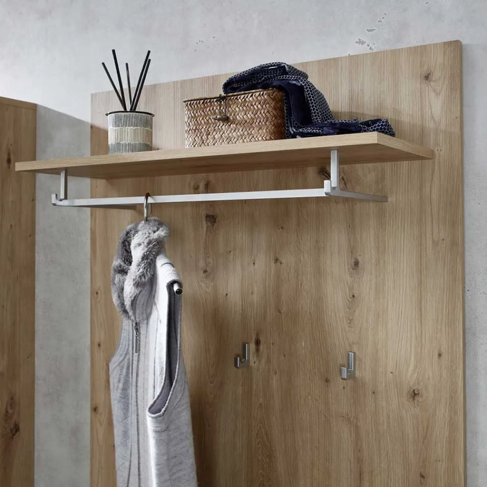 Praktische Haken für Jacken und Taschen sowie eine Ablagefläche für Hüte und Schals bietet das Paneel der Serie „Zelio“. Die stabile Wandmontage gewährleistet, dass alles sicher an seinem Platz bleibt. So herrscht immer Ordnung im Flur und alles ist schnell griffbereit.