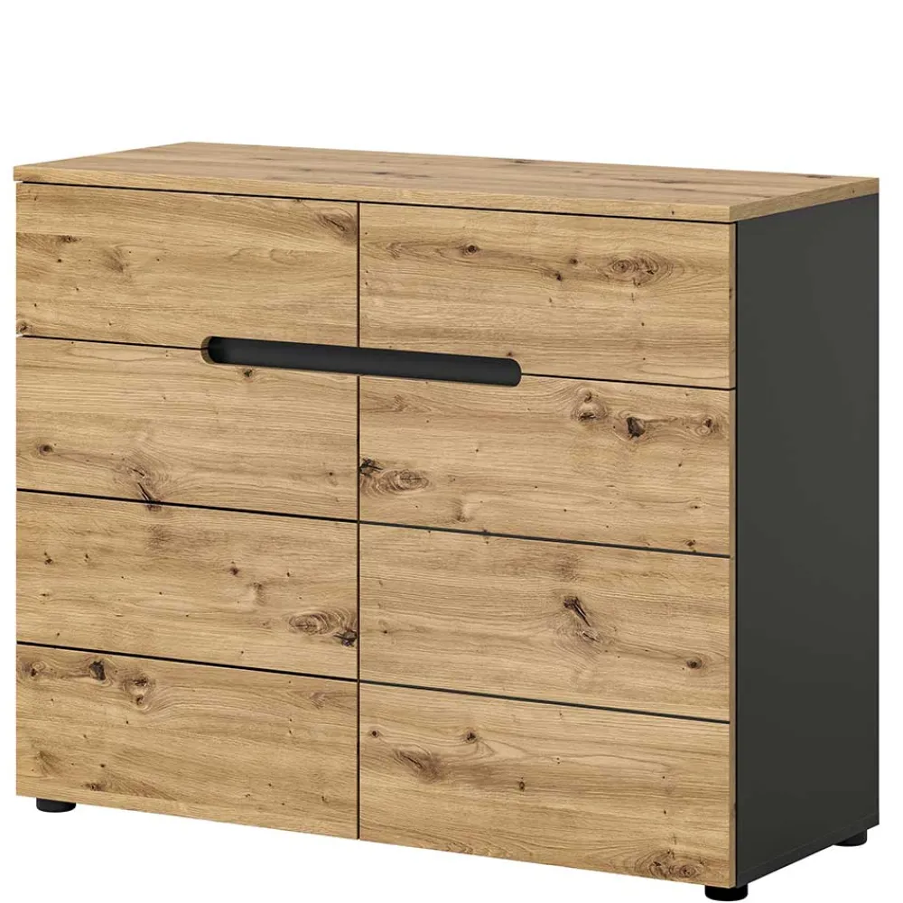 - Kompakte Kommode in Wildeichefarben und Grau
