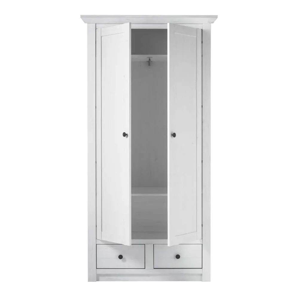 Neben dem ästhetischen Aspekt besticht das Garderobenset „Chelles“ auch durch seine Funktionalität. Die Schubladen sind mit soliden Metallauszügen ausgestattet, die ein reibungsloses Öffnen und Schließen gewährleisten. Die klassischen Knopfgriffe aus Metall in Schwarz setzen einen ansprechenden optischen Kontrast und runden das Gesamtbild perfekt ab.