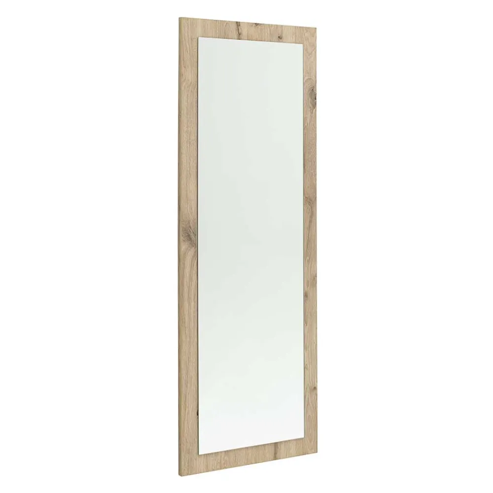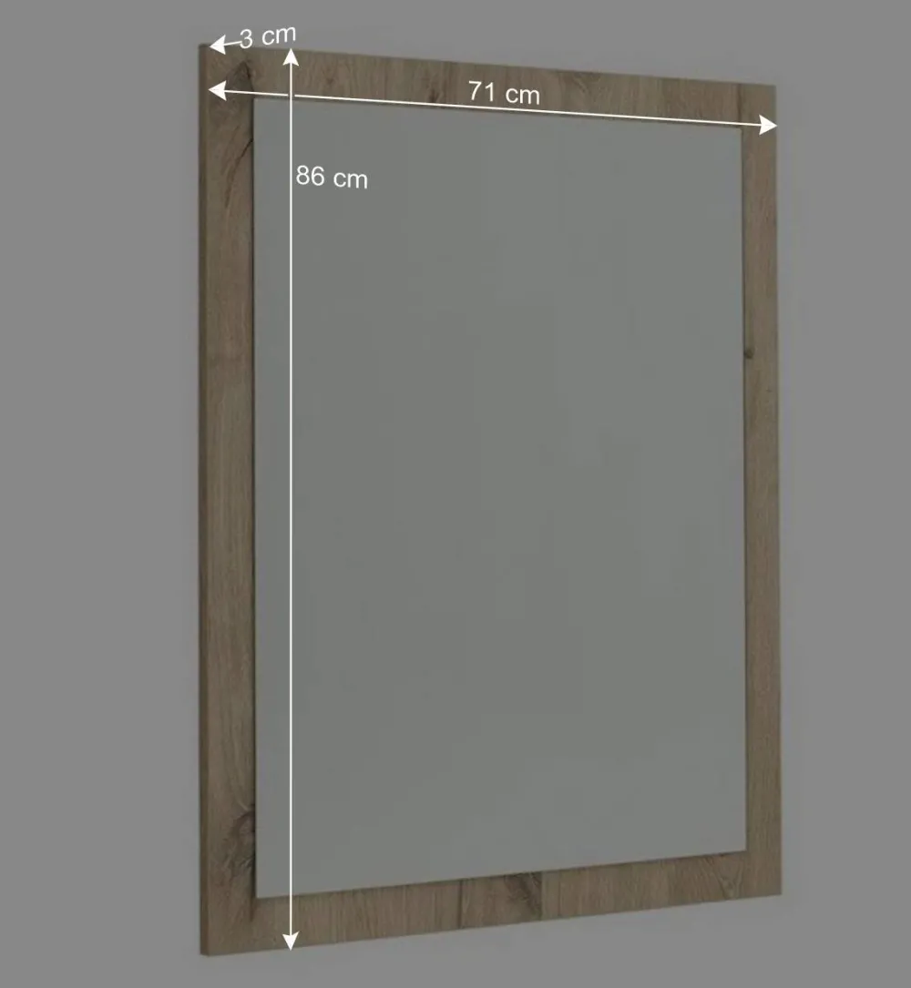Der Rahmen des Spiegels besteht aus robuster Spanplatte, die für ihre Stabilität und Widerstandsfähigkeit bekannt ist. Spanplatten sind eine nachhaltige Wahl, da sie aus recyceltem Holz gefertigt werden und so zur Schonung wertvoller Ressourcen beitragen. Die Melaminbeschichtung in realistischer Wildeiche-Holzoptik sorgt nicht nur für eine natürliche und stilvolle Optik, sondern macht den Spiegel gleichzeitig äußerst pflegeleicht und widerstandsfähig gegenüber Feuchtigkeit, Kratzern und Abrieb.