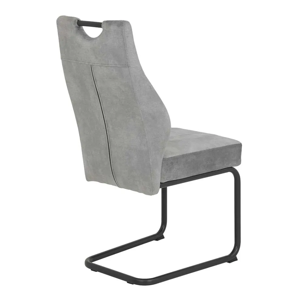 Das schwarz pulverbeschichtete Rundrohrgestell aus robustem Metall ist nicht nur ein optisches Highlight, sondern auch ein Garant für Langlebigkeit und Stabilität. Mit einer hohen Belastbarkeit von bis zu 140 kg und integrierten Bodenschonern steht der Stuhl sicher auf jedem Untergrund. Dank des praktischen Griffs an der Rückenlehne lässt sich der Stuhl mühelos verschieben – ideal, wenn Gäste kommen oder der Raum flexibel genutzt werden soll.