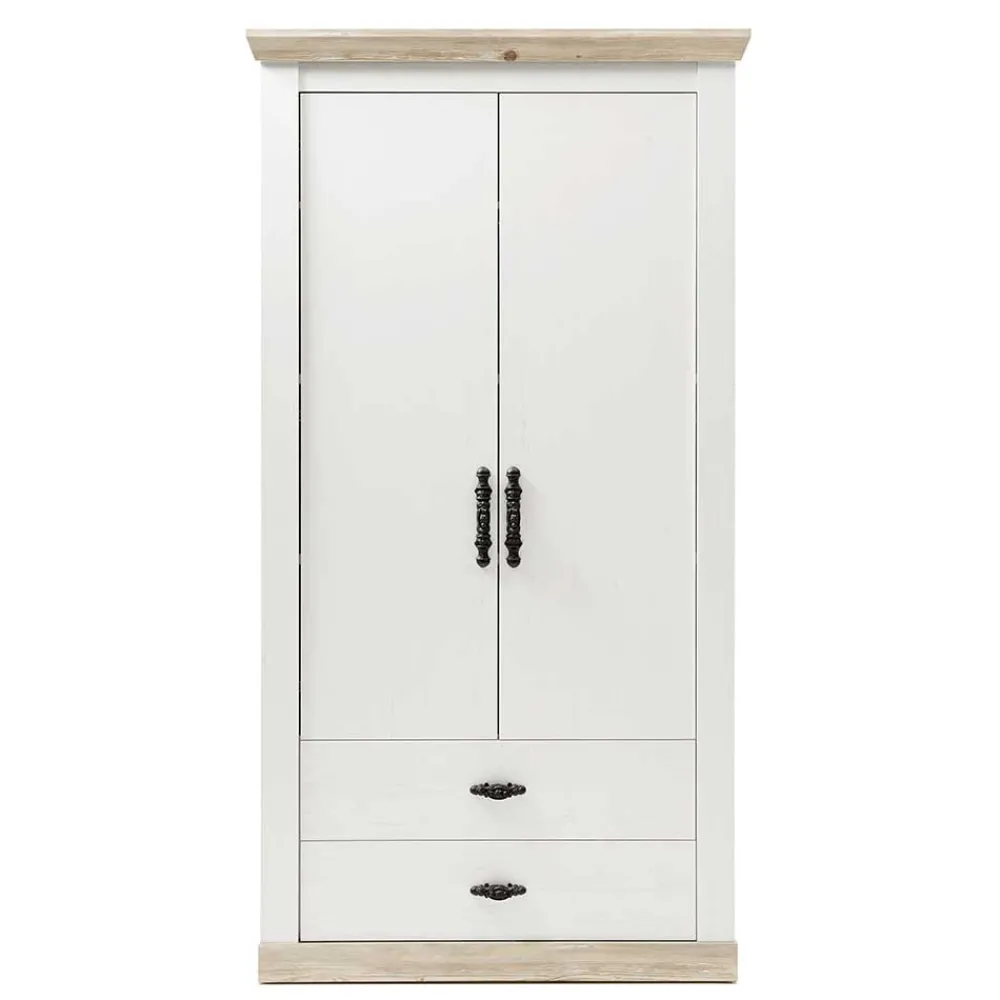 - Geräumiger Garderobenschrank in Weiß und Pinie verwittert