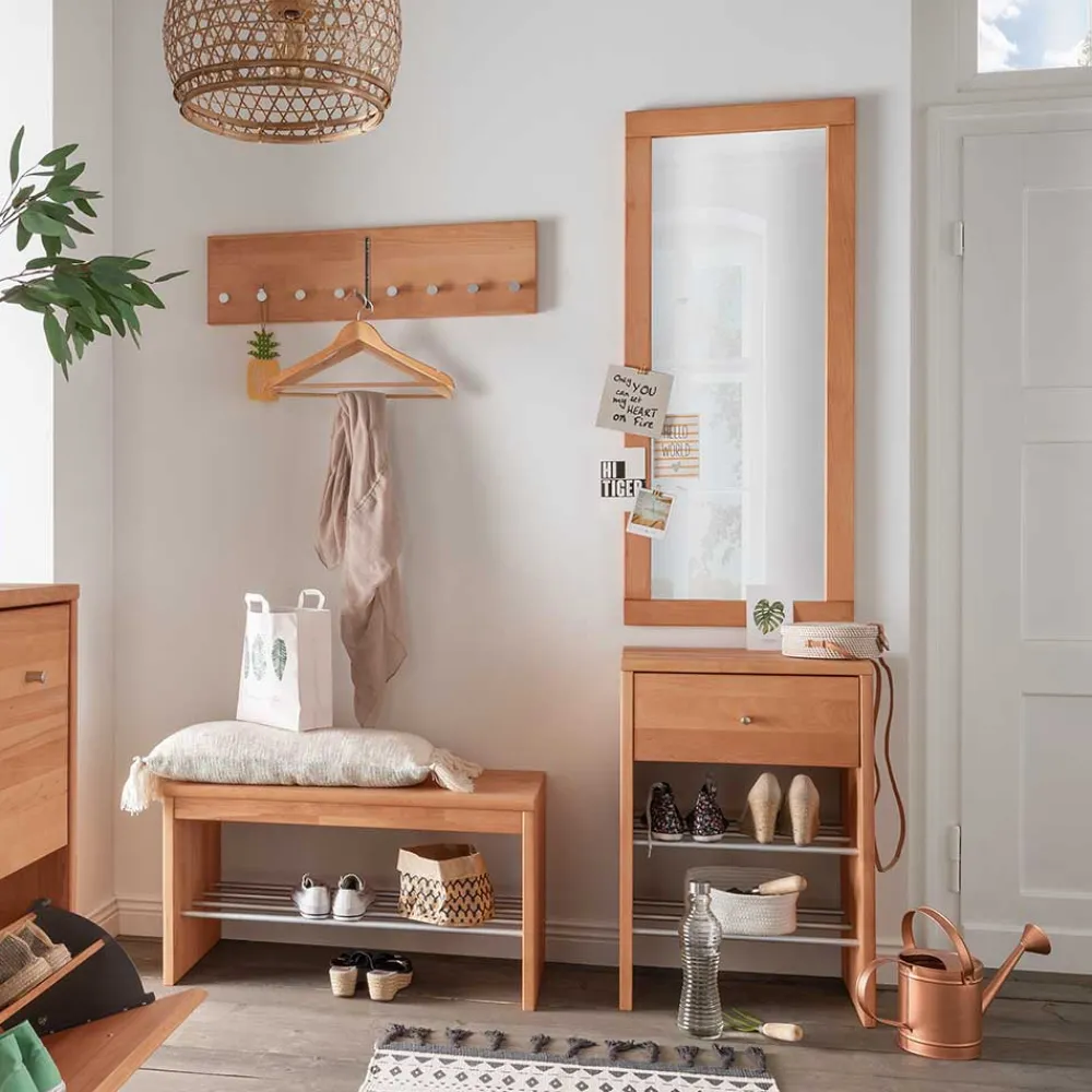 Der Garderobenspiegel „Shimousa“ ist nicht nur funktional, sondern auch ein stilvolles Accessoire für Ihren Eingangsbereich. Gefertigt aus hochwertigem Spiegelglas mit einem Rahmen aus massivem Buchenholz und einer geölten Oberfläche, überzeugt der Spiegel durch seine Qualität und Langlebigkeit.