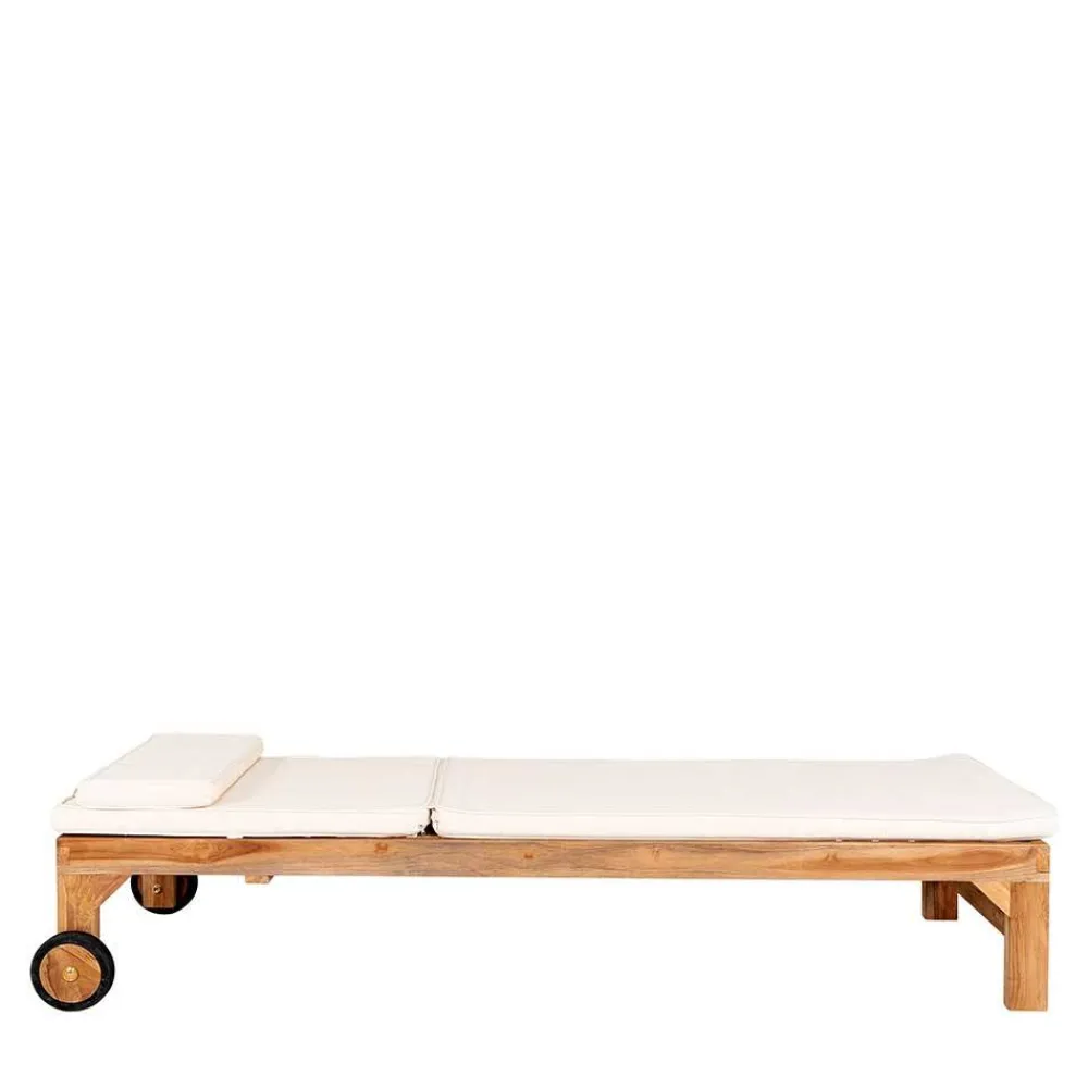Die Gartenliege „Senvelita“ wird aus massivem Teakholz gefertigt, einem Material, das für seine außergewöhnliche Langlebigkeit und Widerstandsfähigkeit bekannt ist. Teakholz ist besonders robust und widerstandsfähig gegenüber Witterungseinflüssen und garantiert Ihnen über Jahre hinweg Freude an Ihrem Möbelstück. Das Material zeichnet sich durch eine natürliche Ölhaltigkeit aus, die das Holz vor Wasser und Schimmel schützt. Die naturbelassene Oberfläche betont die lebendige, authentische Holzmaserung, die jeder Liege ihre eigene, einzigartige Schönheit verleiht. Über die Zeit entwickelt Teakholz eine edle graue Patina, die dem Holz zusätzliches Charisma verleiht und das Möbelstück noch wertvoller und zeitloser erscheinen lässt.