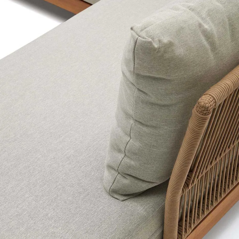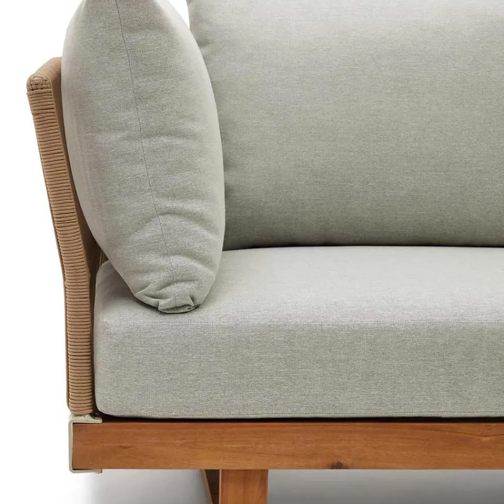 Gefertigt aus robustem Akazien-Massivholz, das nicht nur durch seine Stabilität, sondern auch durch seine wunderschöne natürliche Maserung überzeugt. Akazienholz ist bekannt für seine Härte und Widerstandsfähigkeit, wodurch Ihre Garten Sitzecke selbst bei intensiver Nutzung ihre Form und Schönheit bewahrt. Das Kordelgeflecht am Rücken verleiht dem Sofa nicht nur einen modernen Touch, sondern sorgt auch für eine hervorragende Belüftung und erhöht den Sitzkomfort.