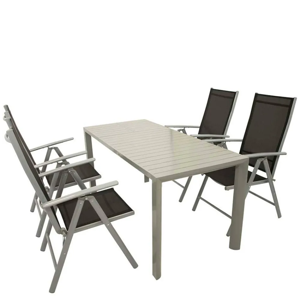 - Solide Garten Essgruppe in Schwarz und Silbergrau
