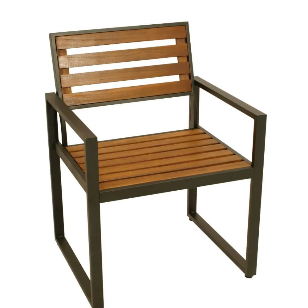 Der Gartensessel „Veracruz“ kombiniert modernes Design mit langlebiger Funktionalität. In warmen Akaziefarben und Anthrazit gehalten, fügt sich der Sessel harmonisch in Garten, Terrasse oder Balkon ein. Die leicht nach hinten geneigte Rückenlehne und die kantigen Metall-Armlehnen sorgen für angenehmen Sitzkomfort bei jeder Gelegenheit – ob beim Frühstück im Freien, gemütlichen Lesestunden oder entspannten Nachmittagen im Garten.