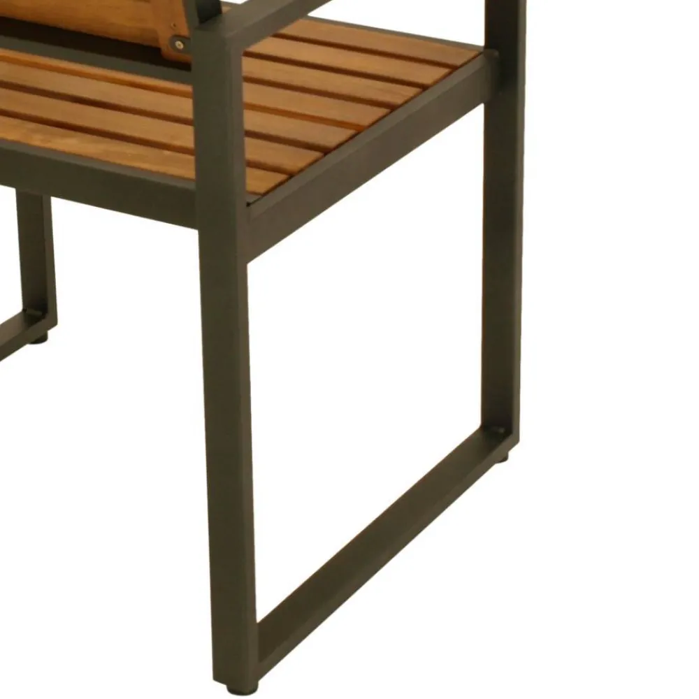 Gefertigt aus massivem Akazienholz und pulverbeschichtetem Stahl überzeugt „Veracruz“ durch Stabilität und Langlebigkeit. Die geölten Holzoberflächen betonen die natürliche Maserung und schützen das Holz, während das Metallgestell sicheren Stand und moderne Optik vereint. Die offene Rückenlehne sorgt zudem für ein leichtes, luftiges Erscheinungsbild.