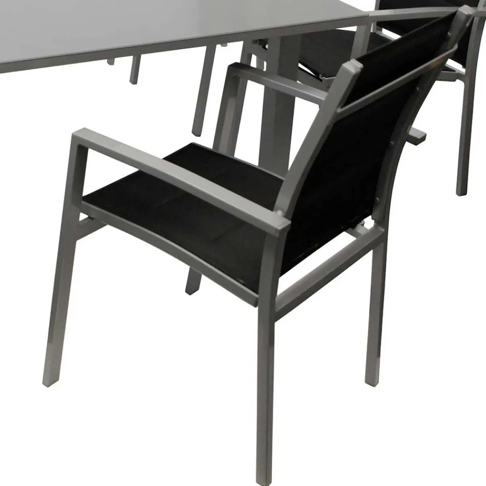 Hochwertige Materialien sind das Fundament der „Capo“ Sitzgruppe. Rahmen aus leichtem, jedoch extrem widerstandsfähigem Aluminium bieten die ideale Basis. Dank der Pulverbeschichtung sind diese Metallteile hervorragend gegen Witterungseinflüsse und Korrosion geschützt. Die Tischplatte aus robustem Sicherheitsglas besticht durch ihre Strapazierfähigkeit und Pflegeleichtigkeit. Textilgewebe aus 100 % Polyester garantiert hohe Strapazierfähigkeit, Atmungsaktivität und sorgt für maximalen Komfort, selbst bei längerem Verweilen.