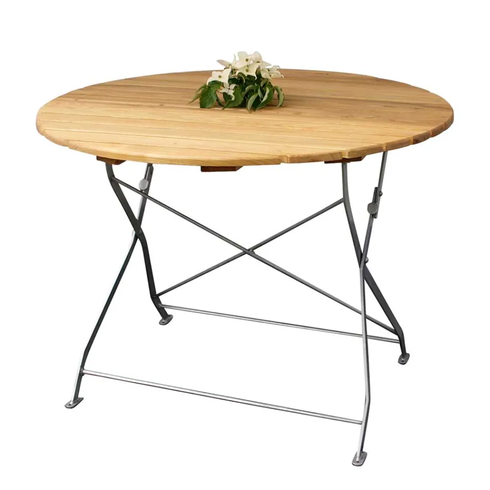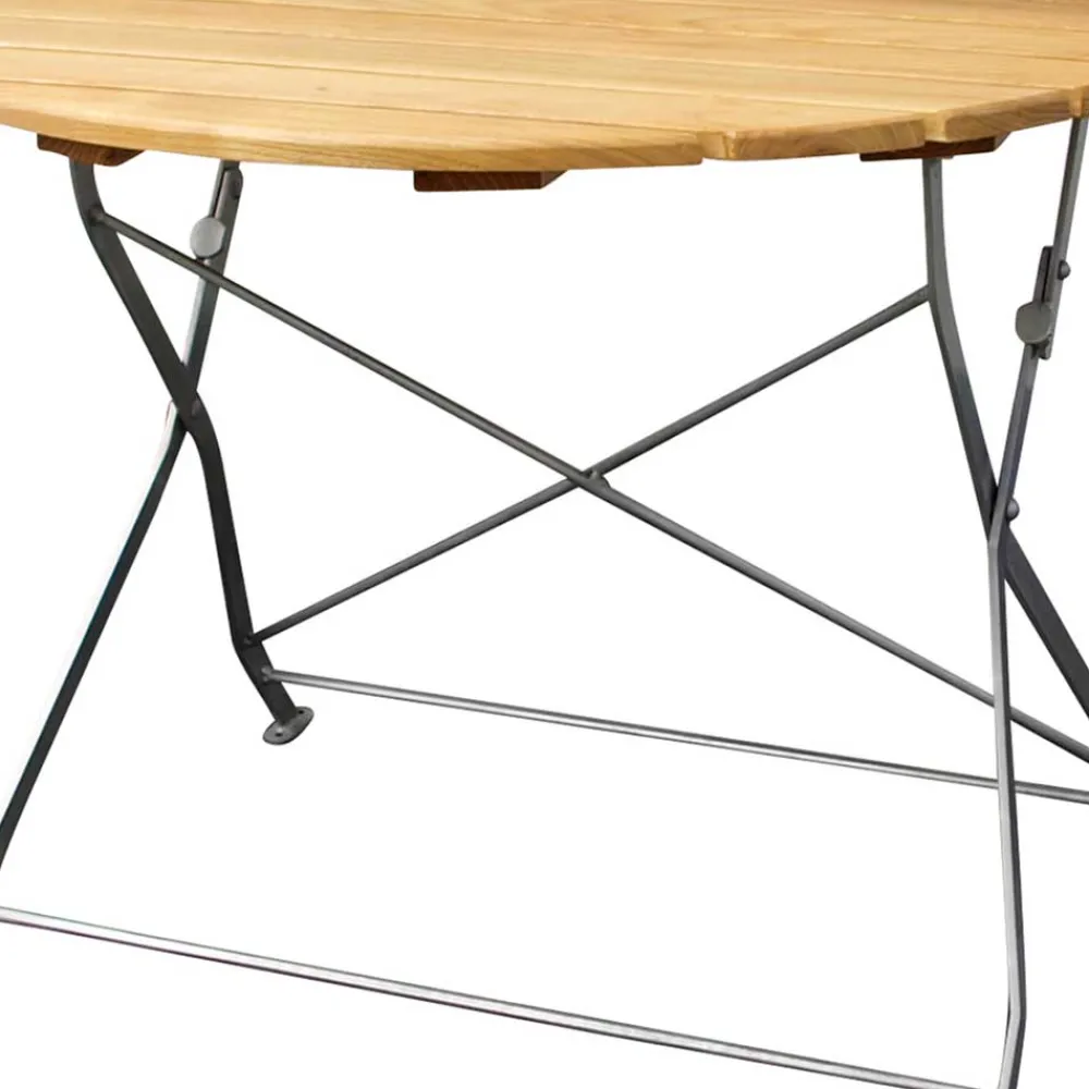 Die runde Tischplatte des „Paznaun“-Modells ist mit Zwischenräumen versehen. Diese offene Struktur sorgt nicht nur für ein modernes Design, sondern bietet auch praktische Vorteile: Sie verhindert, dass sich Wasser auf der Tischplatte staut und sorgt so für eine bessere Drainage. So bleibt Ihr Tisch immer trocken und einsatzbereit, auch nach einem kurzen Regenschauer.