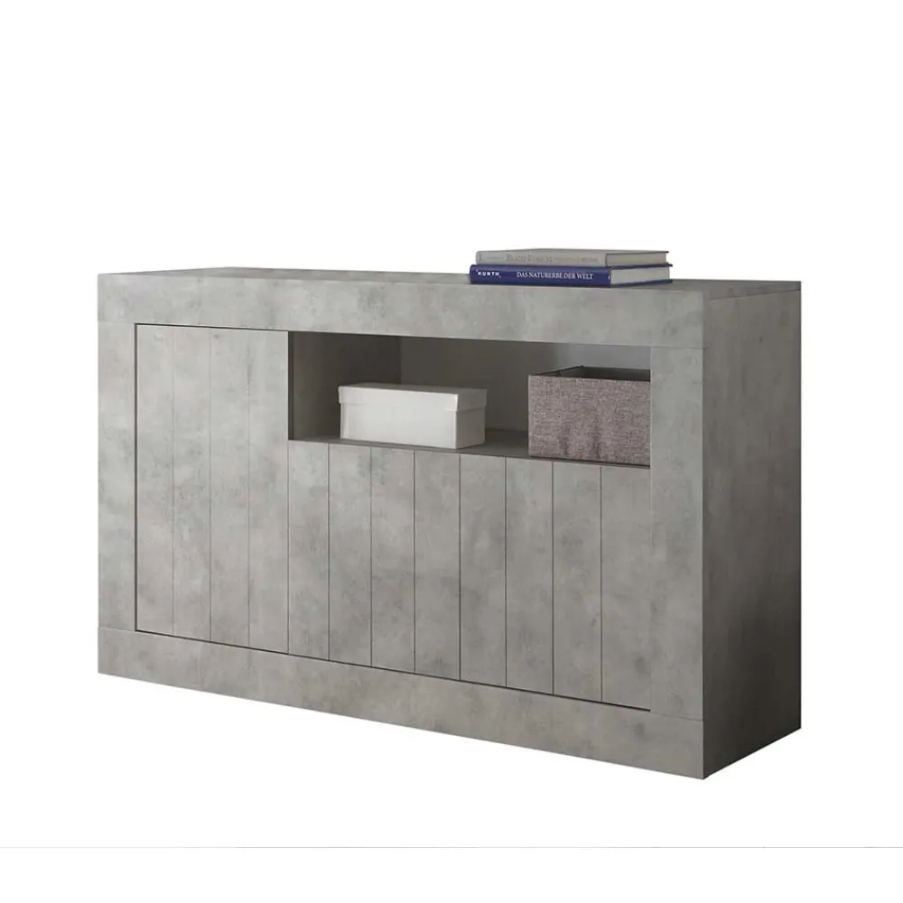 Die Oberfläche der Kommode ist mit Melamin beschichtet, einem Material, das Kratzern, Hitze und Feuchtigkeit widersteht. Diese pflegeleichte Beschichtung in stilvollem Beton-Grau verspricht einfache Reinigung und langanhaltende Schönheit ohne Kompromisse.