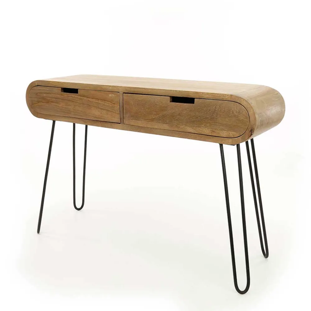 - Attraktiver Konsoltisch in Mangoholz Sandfarben und Schwarz