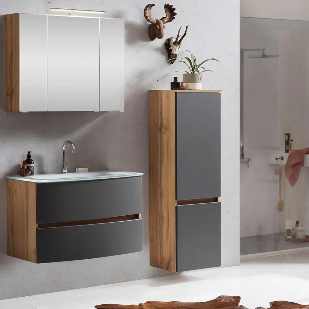 - Exklusives Badmöbel Set in Grau und Wildeichefarben