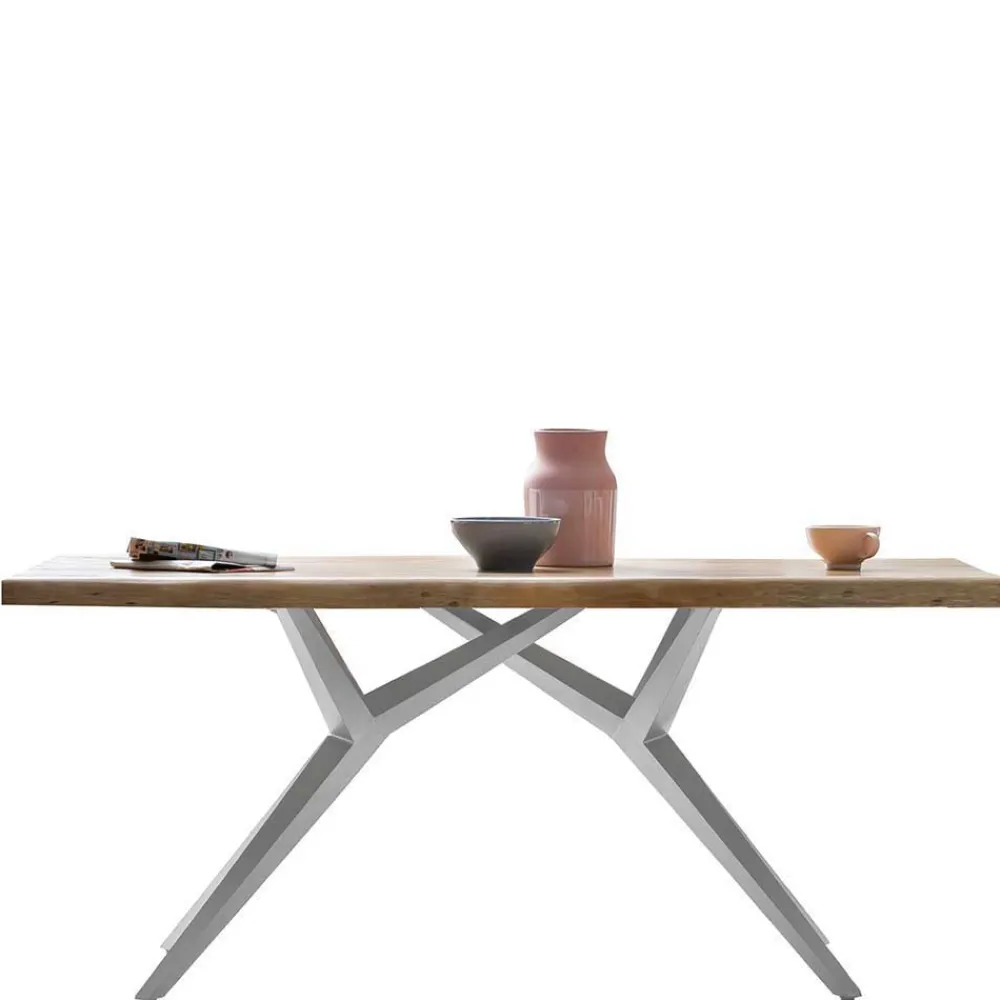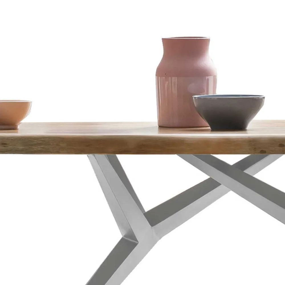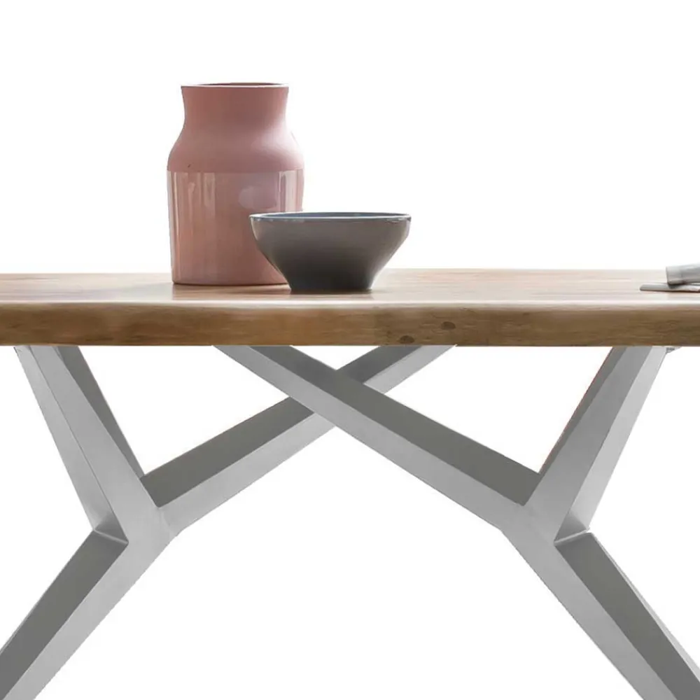 - Massiver Esstisch in Mangoholz Naturfarben und Antiksilber