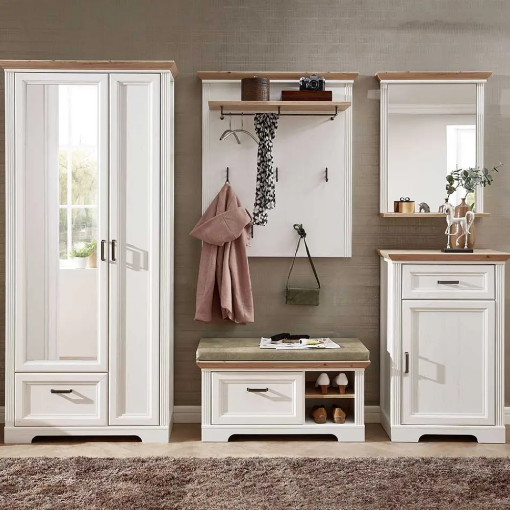 Entdecken Sie das Flair des skandinavischen Landhausstils mit dem Flurmöbel-Set „Nurelcas“ und genießen Sie ein hervorragendes Preis-Leistungsverhältnis.