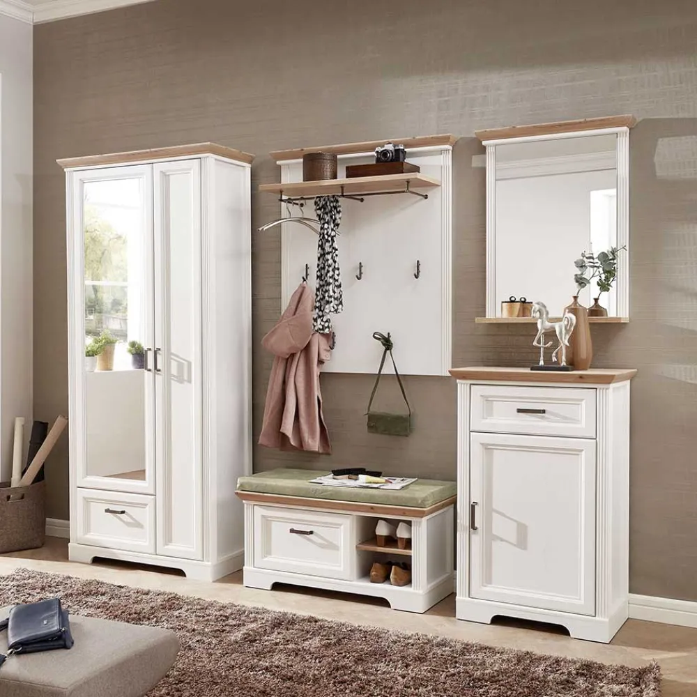 - Elegante Garderoben Kombination in PinieWeiß und Eichefarben