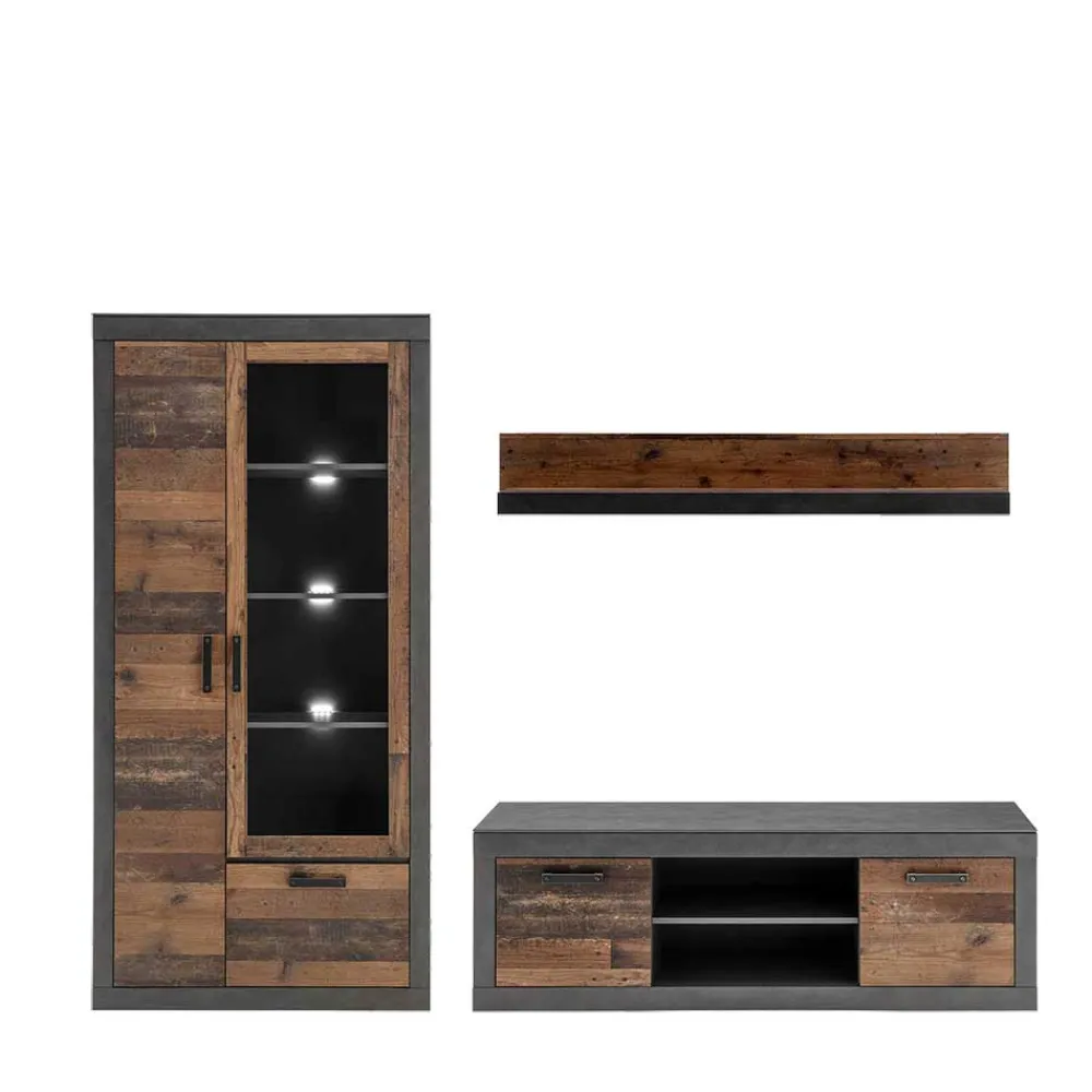 - Erstklassige Wohnwand in Dunkelgrau und Altholz Optik