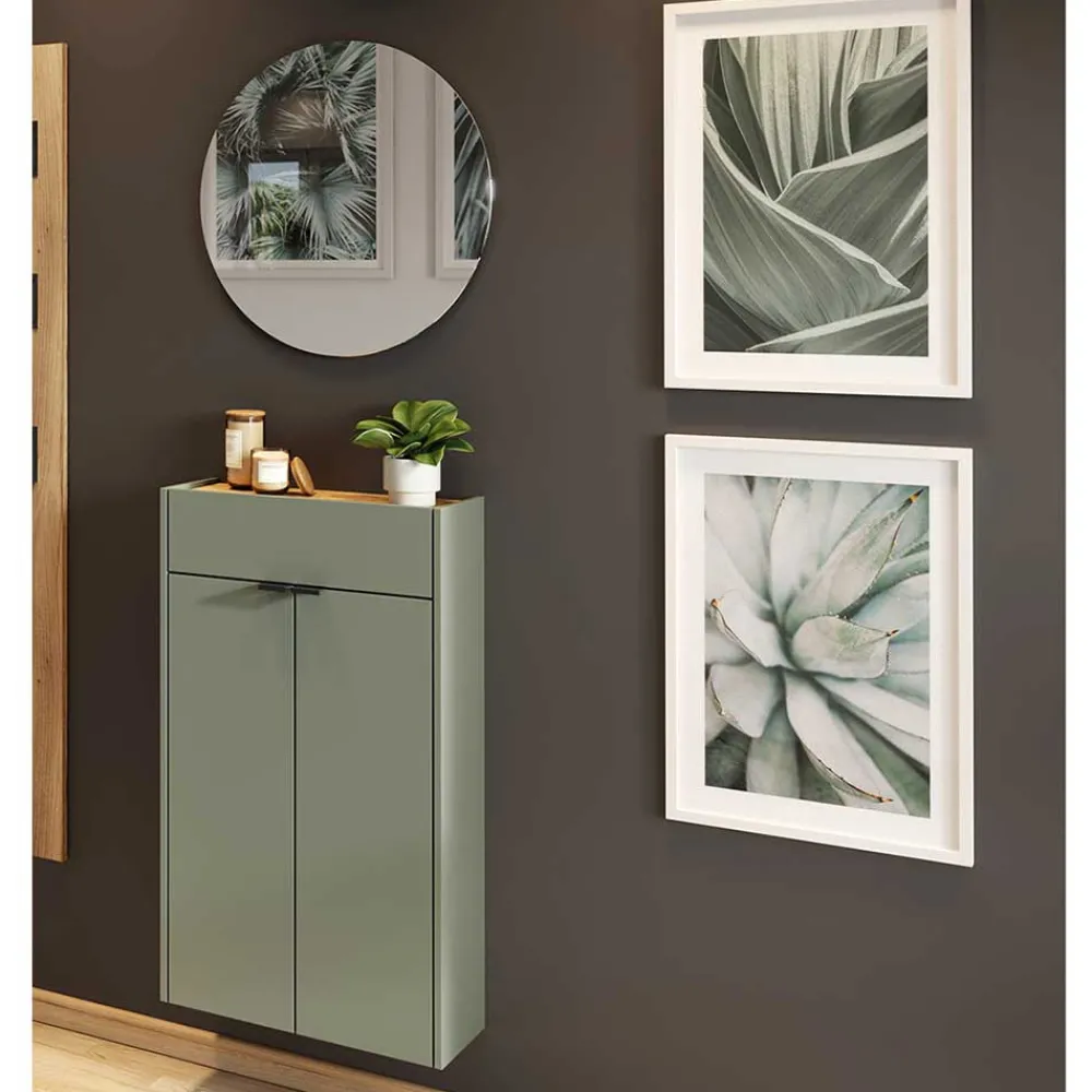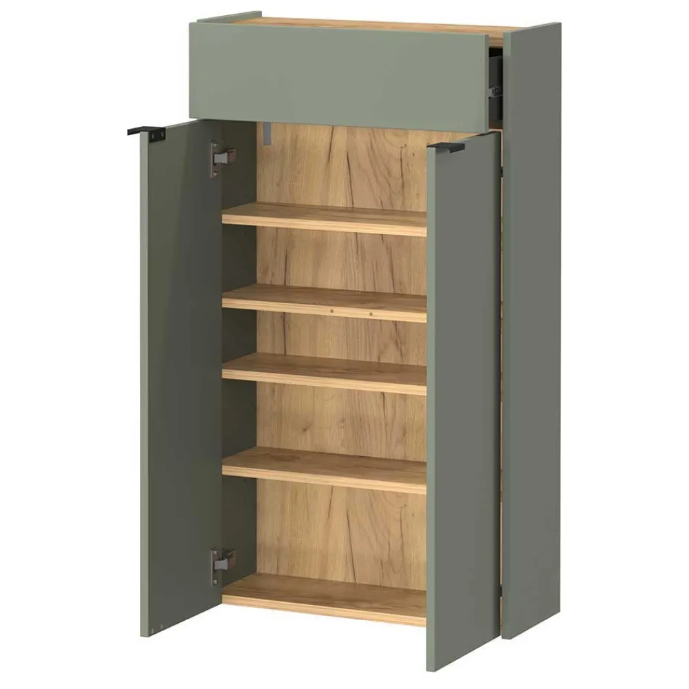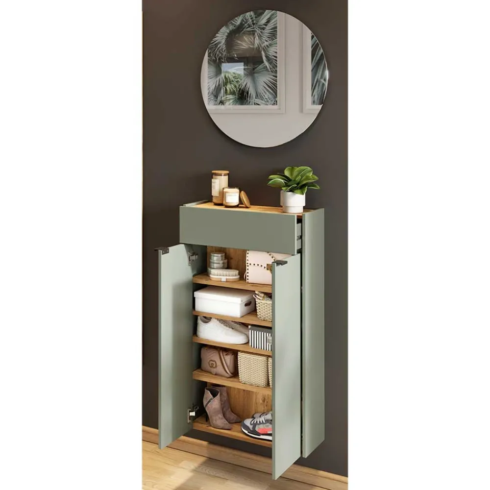 - Klasse Garderobenmöbel in Graugrün und Wildeichefarben