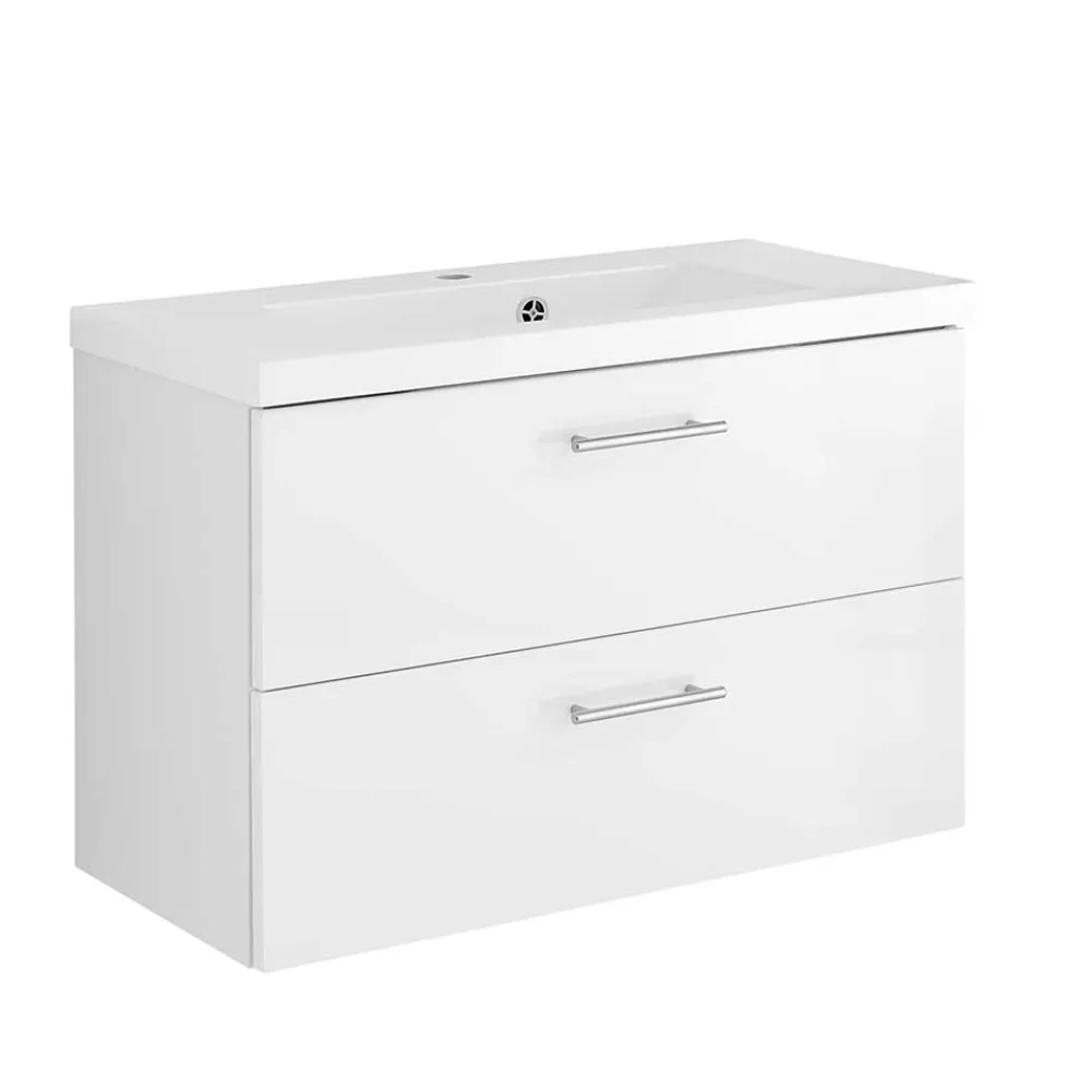 Gefertigt aus widerstandsfähiger Spanplatte (Korpus) und hochwertigem MDF (Front) bringt dieser Waschtisch nicht nur Stabilität, sondern auch Langlebigkeit mit. Die melaminbeschichtete Oberfläche des Korpus ist besonders unempfindlich gegen Feuchtigkeit und Kratzer, während die folierte Hochglanz-Front nicht nur edel aussieht, sondern auch pflegeleicht bleibt.