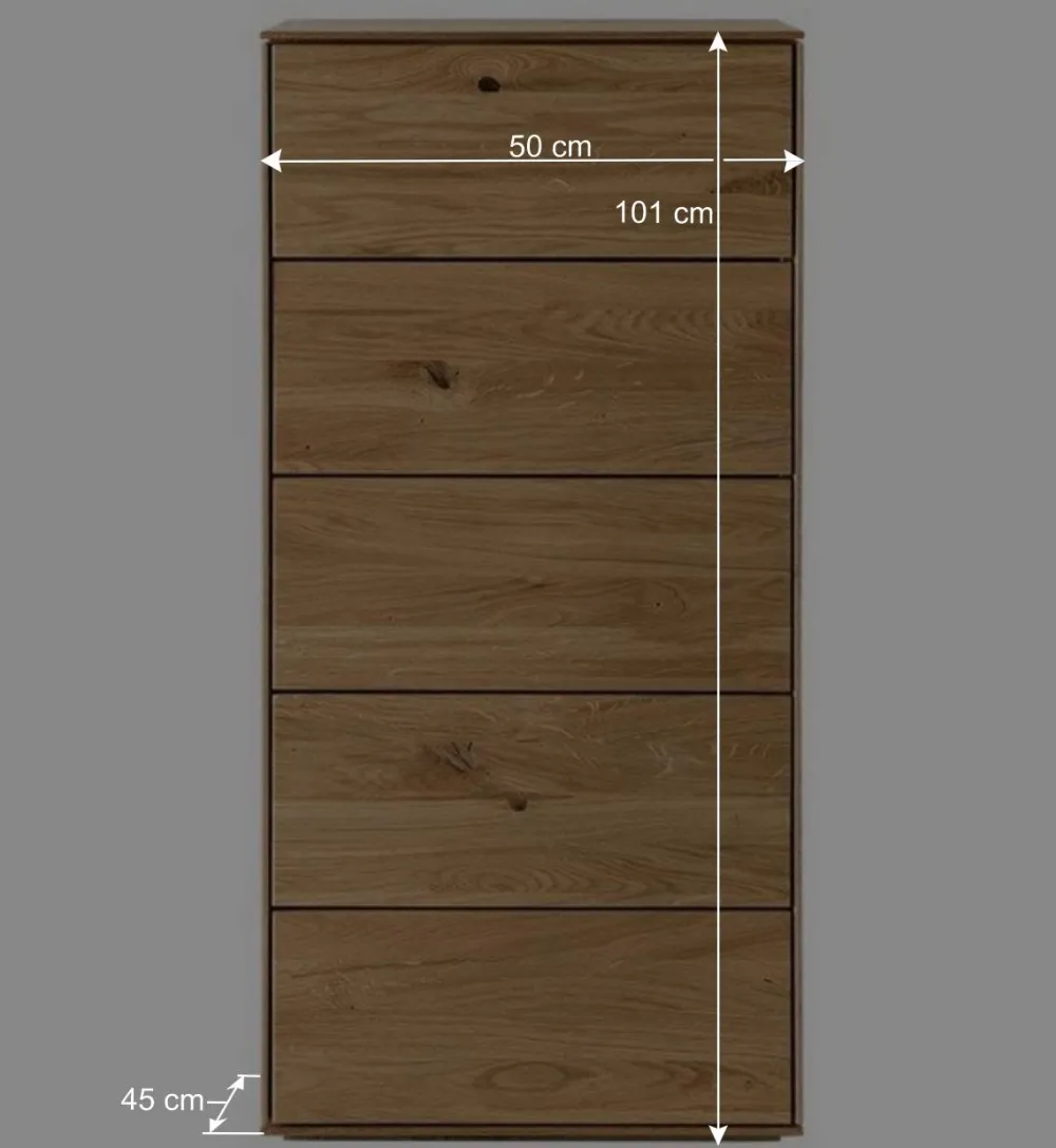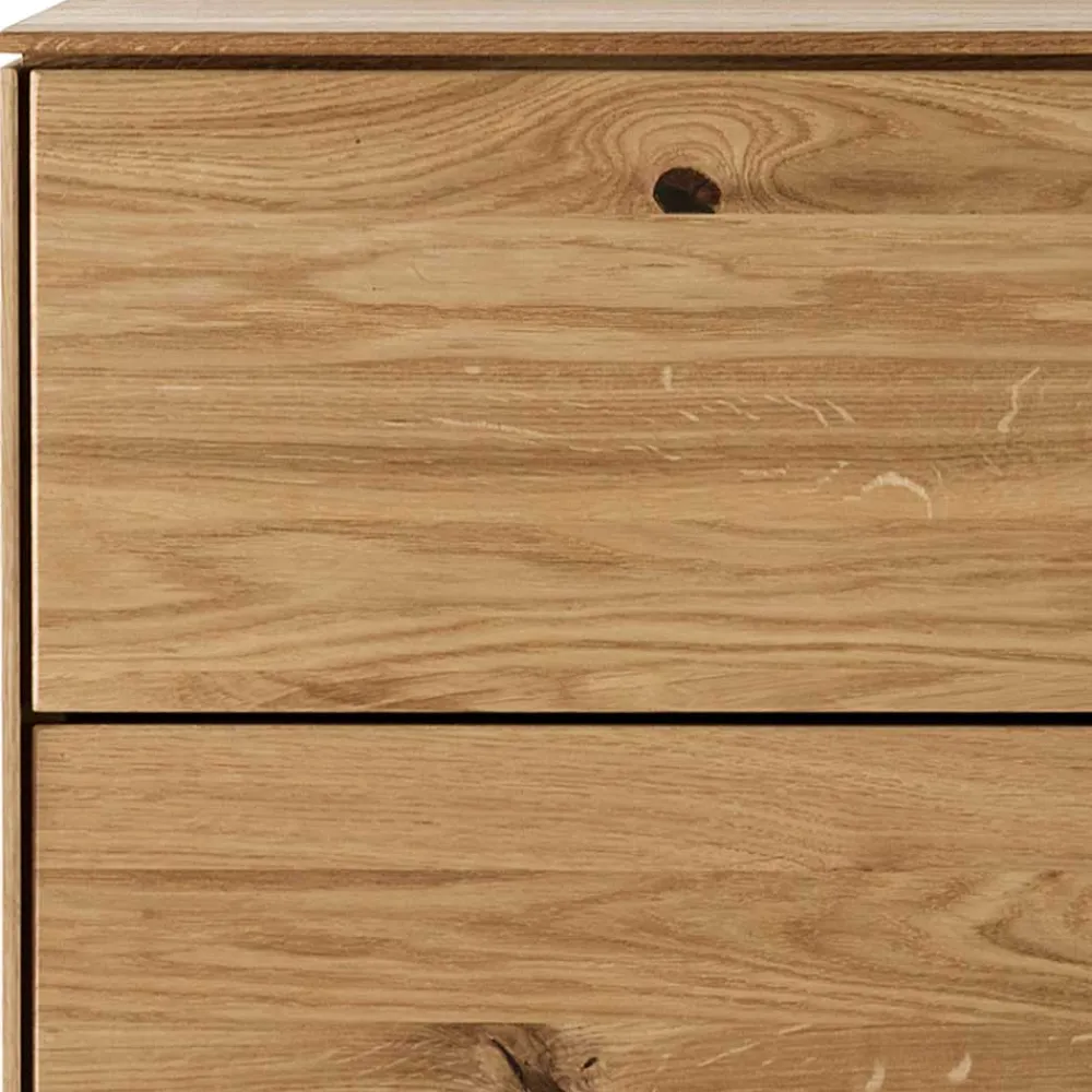Wildeiche ist nicht nur optisch ansprechend, sondern überzeugt auch durch ihre Robustheit und Langlebigkeit. Die charaktervollen Maserungen, kombiniert mit sichtbaren Astlöchern, machen jede Hochkommode einzigartig und verleihen Ihrem Wohnraum eine lebendige, warme Atmosphäre. Wildeiche ist zudem besonders widerstandsfähig gegenüber den alltäglichen Belastungen – eine Investition, die sich über viele Jahre bezahlt macht.