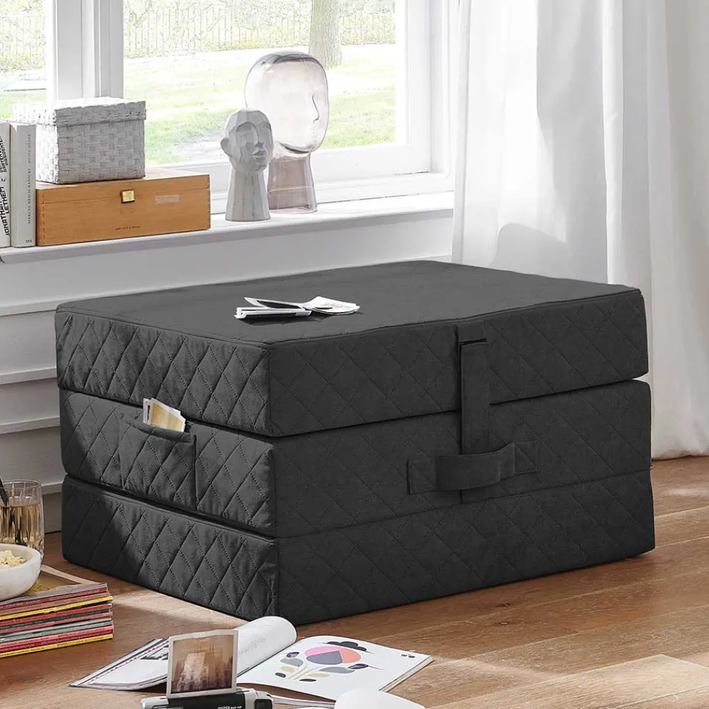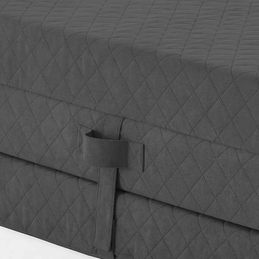 - Pflegeleichter Webstoffbezug aus 100 % Polyester mit Rautensteppung