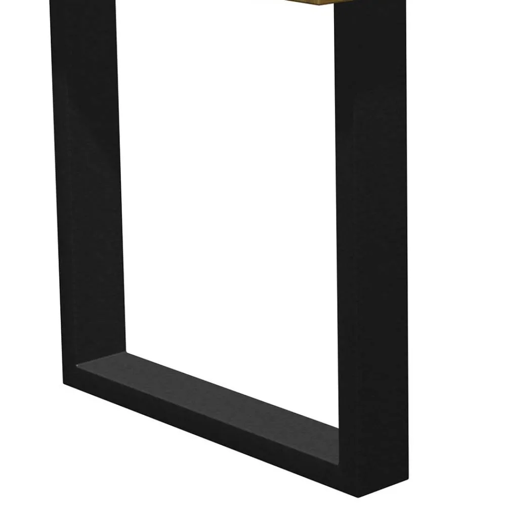Herz des Industrial Esstisches Binia ist eine Platte aus massivem Eichenholz in einer sehr soliden Stärke von etwa 4 cm mit geraden Kanten. Als Unterbau diesen zwei markante Metall-Bügel im U-Design, welche für den kühlen Industrial Charme dieses Tisches verantwortlich sind.