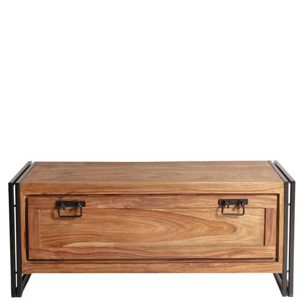 - Gebeizte und lackierte Holzoberfläche, Metallgestell antikschwarz lackiert