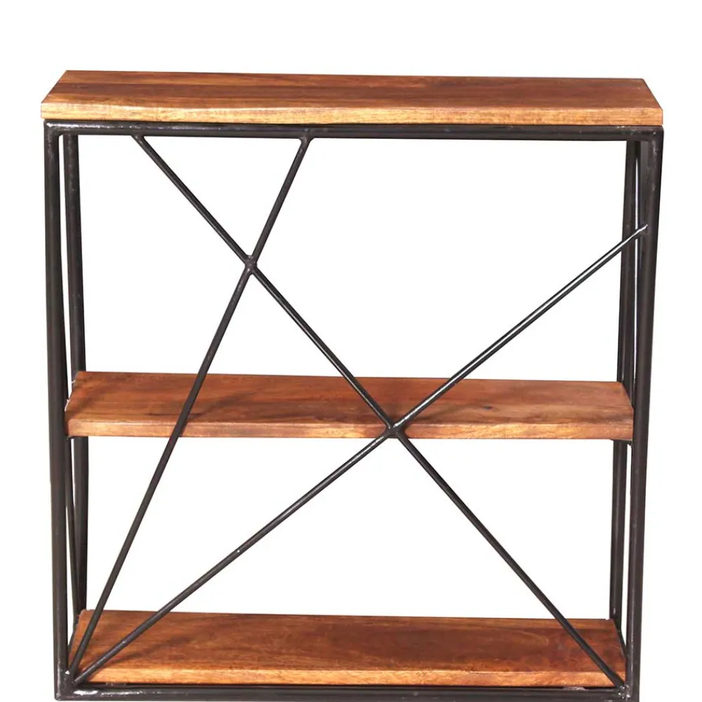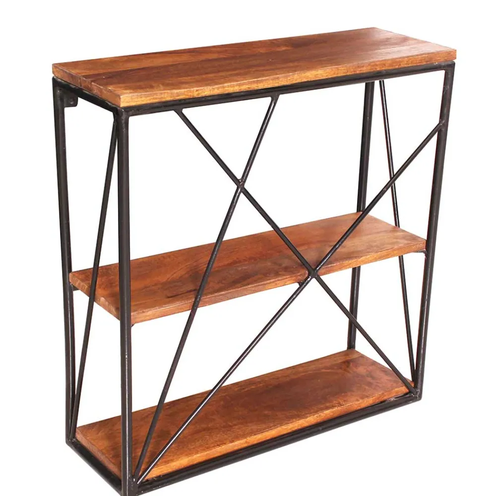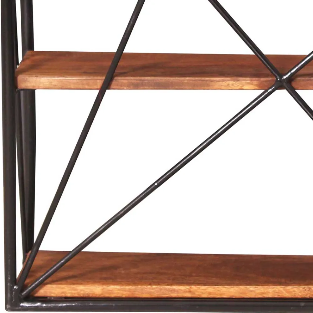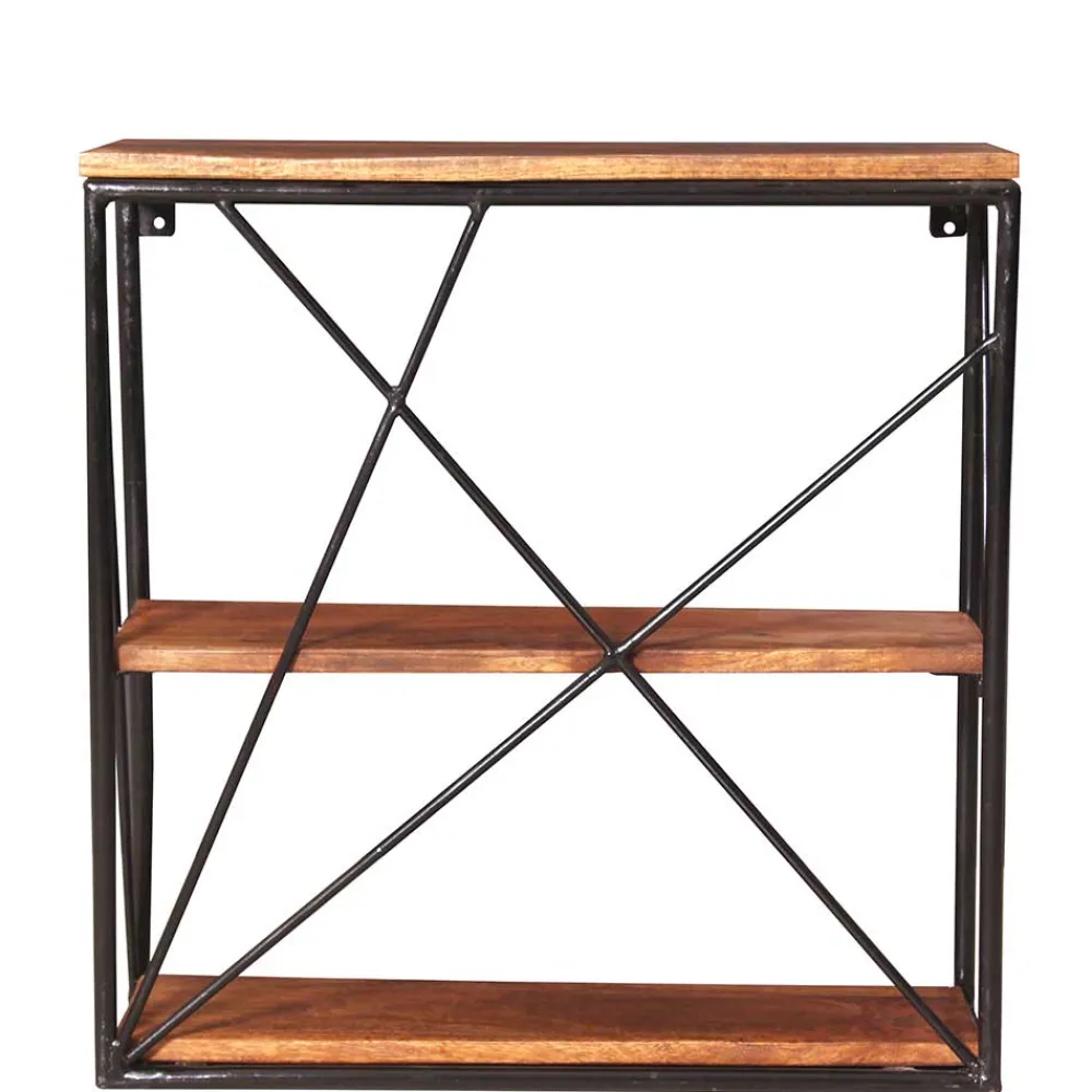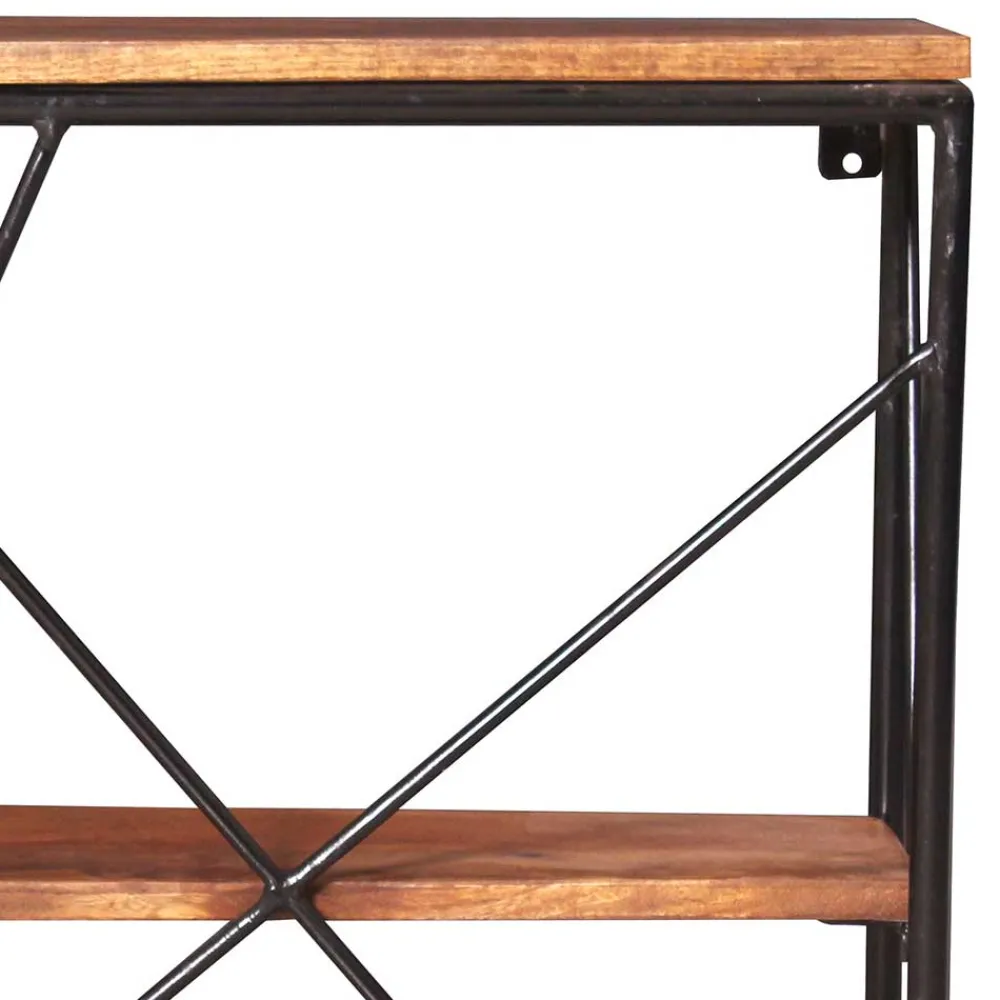 - Dekoratives Hängeregal in Mangoholz Naturfarben und Schwarz