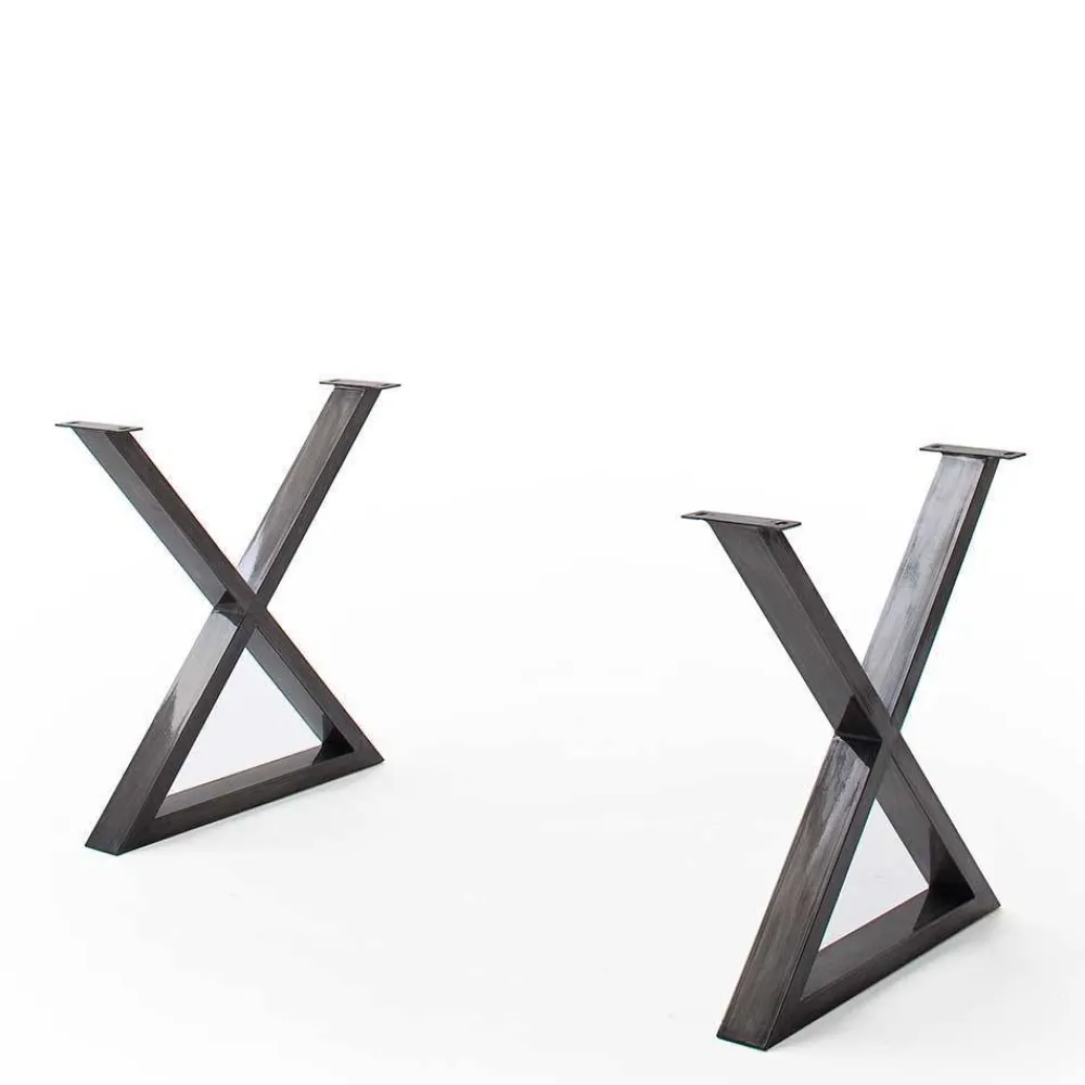 - Das X-förmige Tischgestell aus Metall in Altsilberfarben ist nicht nur modern sondern auch besonders stabil