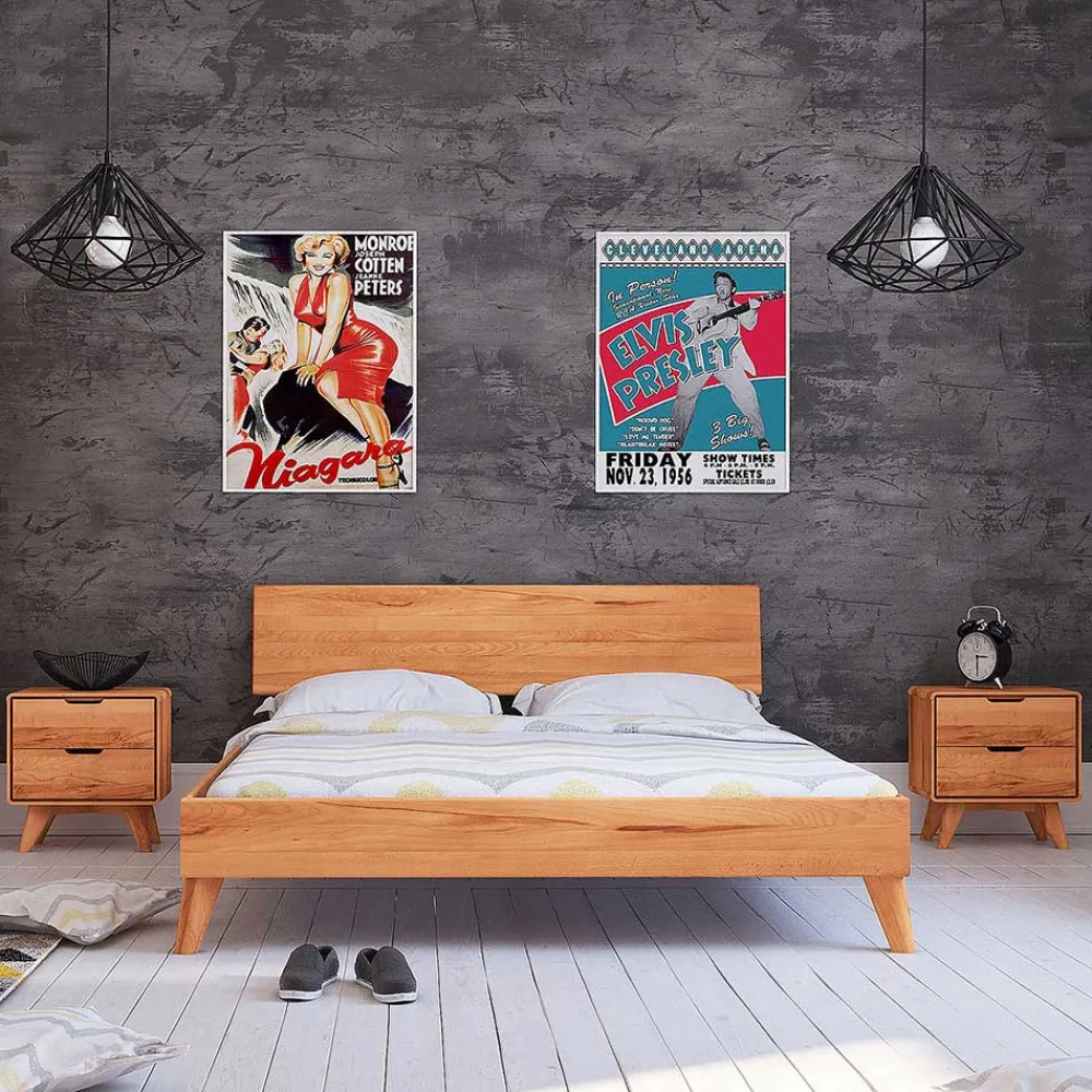 Zum Ehebett „Junola I“ gehören zwei elegante Nachtkommoden aus massiver Kernbuche. Diese verfügen über abgerundete Korpuskanten und zwei Schubladen mit hochwertiger Push-to-open Funktion, welche ein einfaches und sanftes Öffnen ermöglichen. Die schmalen Grifflöcher und das solide Vierfußgestell ergänzen das ansprechende Design.
