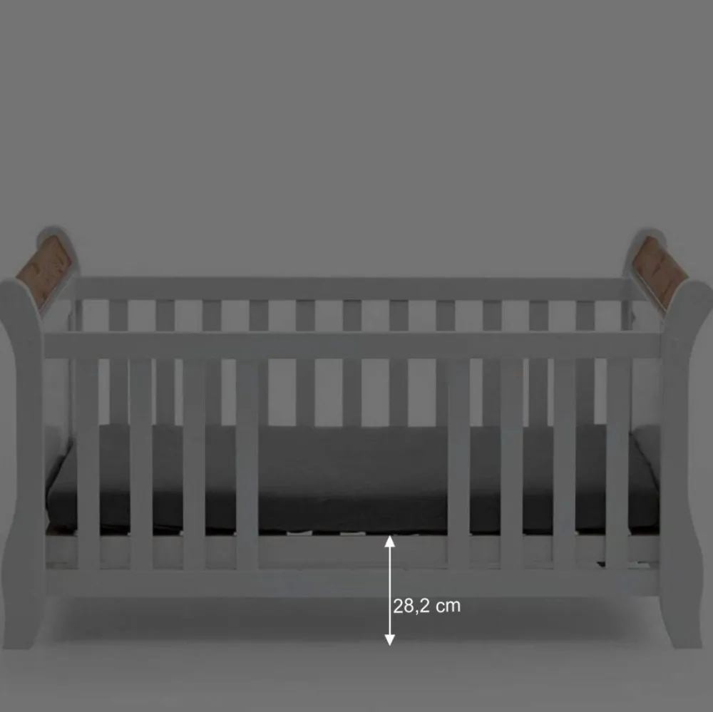 Das harmonisch gestaltete Kopfteil und Fußteil mit geschwungenen Beinen verleihen dem Bett einen romantischen Touch. Die Liegefläche von 70×140 cm bietet genügend Platz für erholsame Nächte. Der im Lieferumfang enthaltene Lattenrost ist in verschiedenen Höhen einlegbar, was eine anpassungsfähige Nutzung ermöglicht. Durch drei herausnehmbare Schlupfsprossen im Gitter kann Ihr Kind später eigenständig ins Bett gelangen und es sicher verlassen.