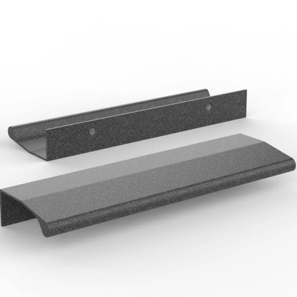 Die Fronten bestehen aus Massivholz Erle und Spiegelglas, der Korpus aus Spanplatte in Erle Holzoptik. Massivholzflächen sind schützend lackiert, Holzwerkstoffoberflächen pflegeleicht und strapazierfähig. Kleiderstangen, Halterungen und Bodenträger sind aus robustem Metall gefertigt, die Griffe aus Aluminium in Schiefergrau. Rückwände aus Hartfaser sind eingenutet und werden je Fachabteil durch vier Metallhalter fixiert. Der Schrank steht auf einem durchgehenden Sockelboden, muss zusätzlich an der Wand befestigt werden (Kippsicherung).