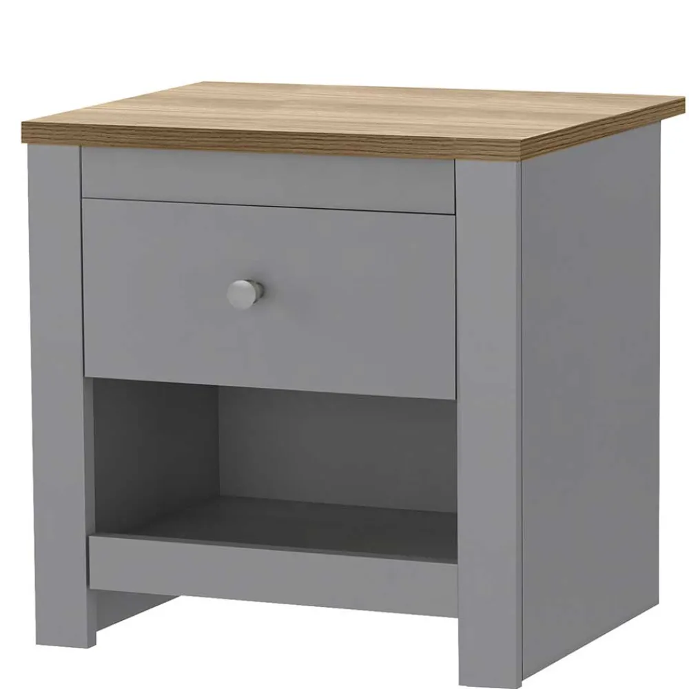 - Praktische Nachtkommode in Grau und Eichefarben