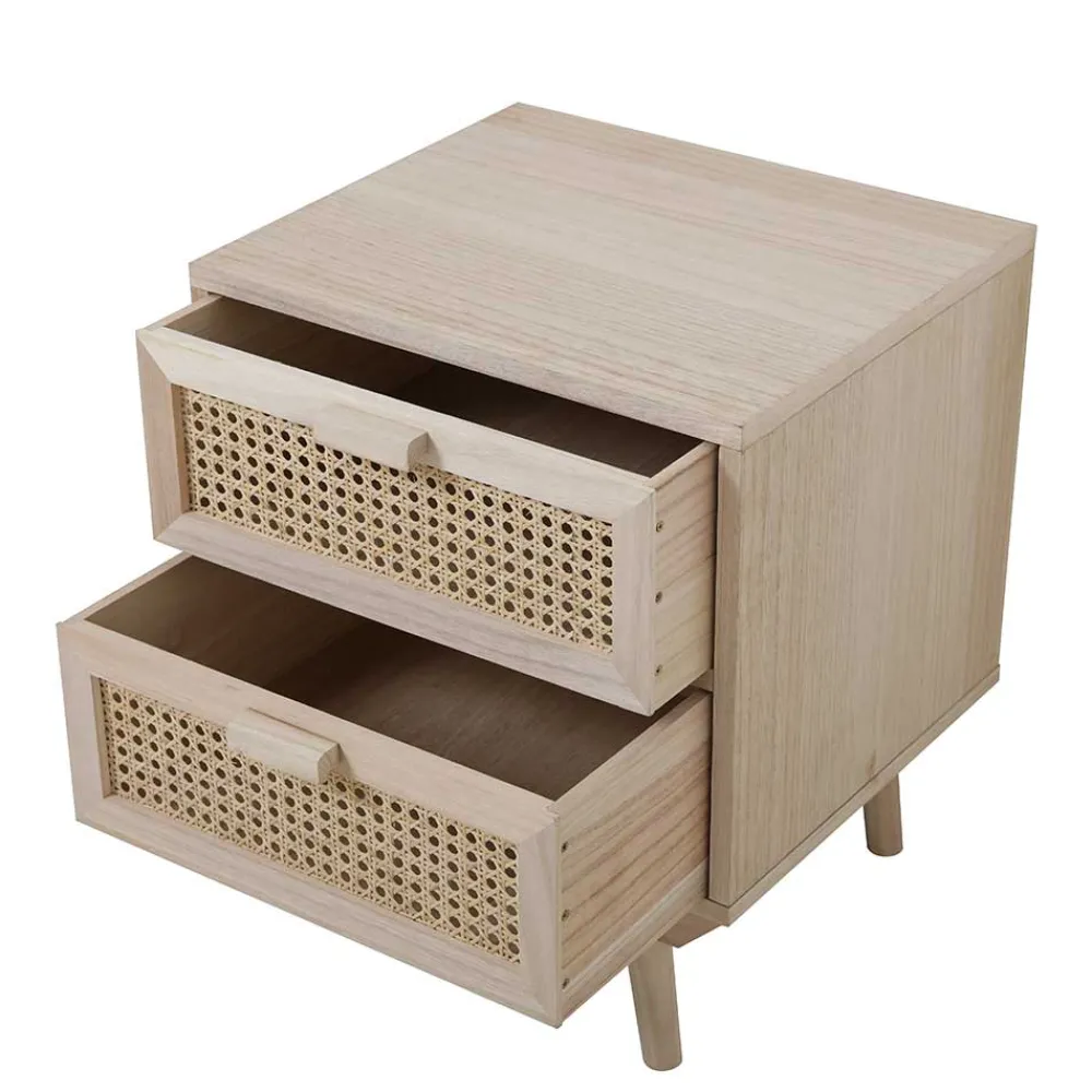 - Aus massivem Paulowniaholz, MDF und Rattan hergestellt